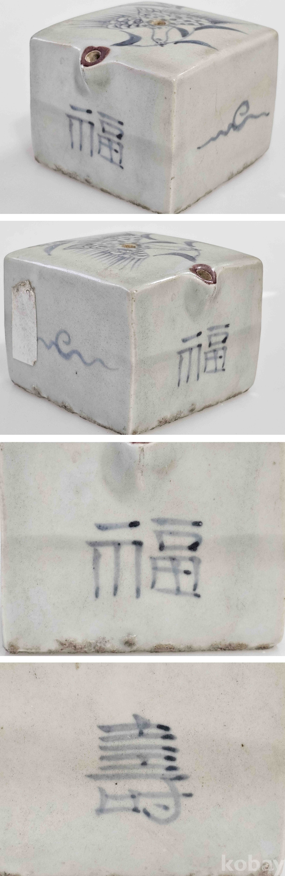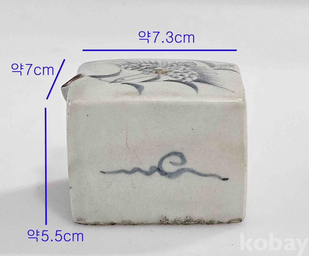 @상태: 연대감 좋은 연적04 철화청화백자 봉황 수복문 사각연적입니다.