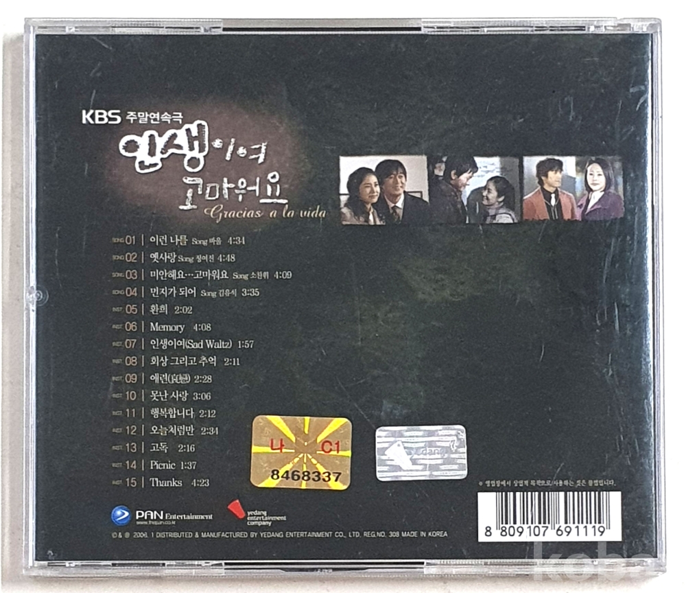 물 품 명 | KBS 주말연속극 인생이여 고마워요 OST 앨범 / 바울 , 소찬휘 참여 아티스트 / 2006년 |