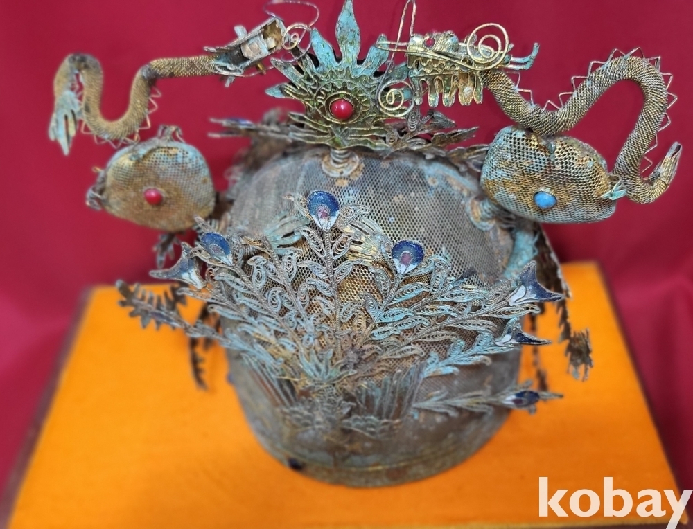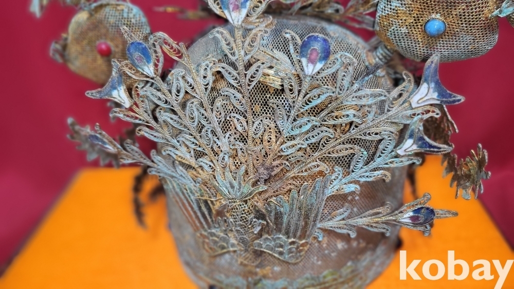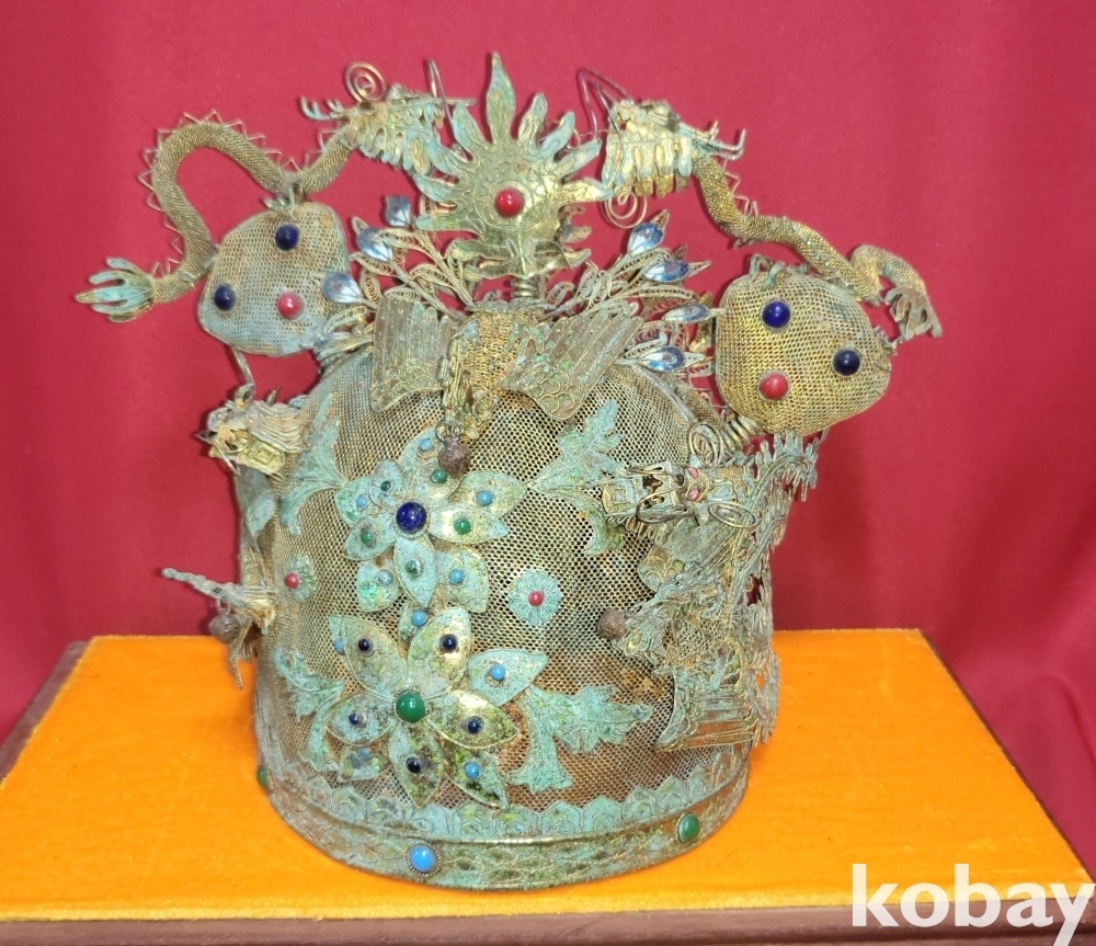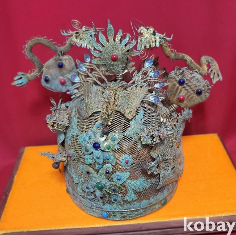 금색 물질은 황금인지는 검사하지 않아서 미감정입니다,여러개의 보석이 박힘 명품입니다,