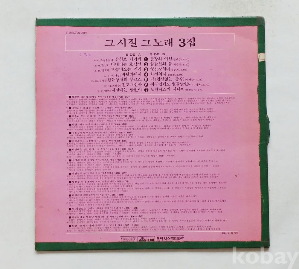 EX : 약간의 마모, 모서리 찢김 존재 음반상태