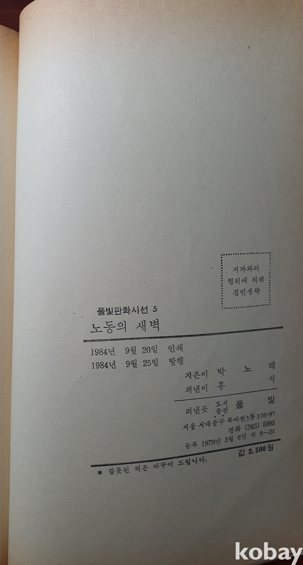 박노해 시집,풀빛,1984년 초판,상태는 양호 깨끗한 시집