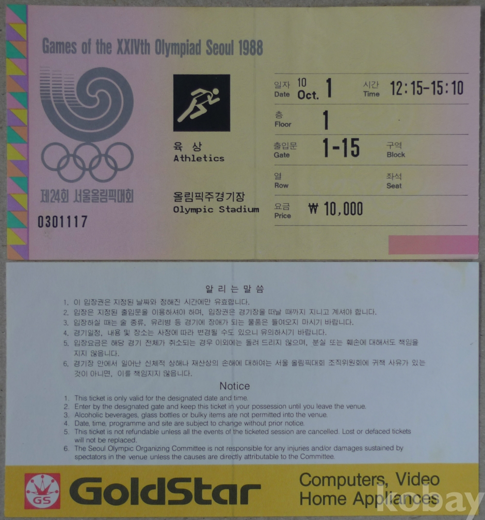 1988년 서울올림픽 육상 경기 입장권