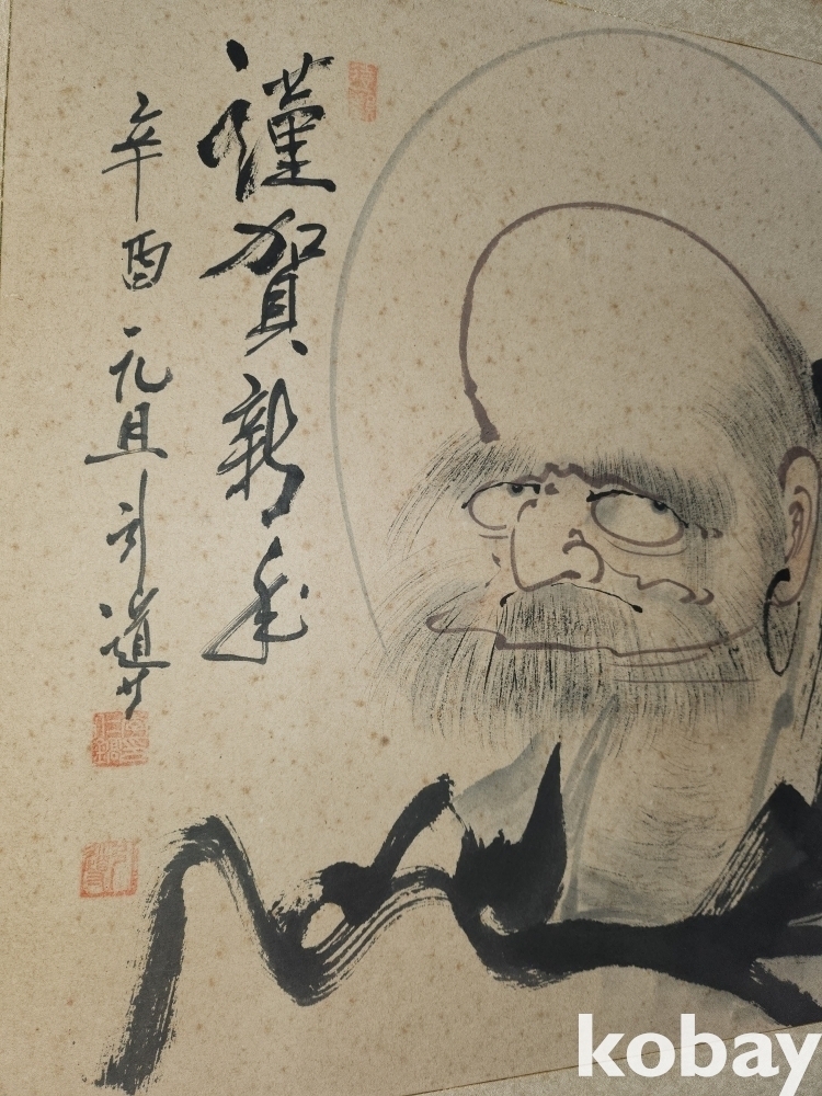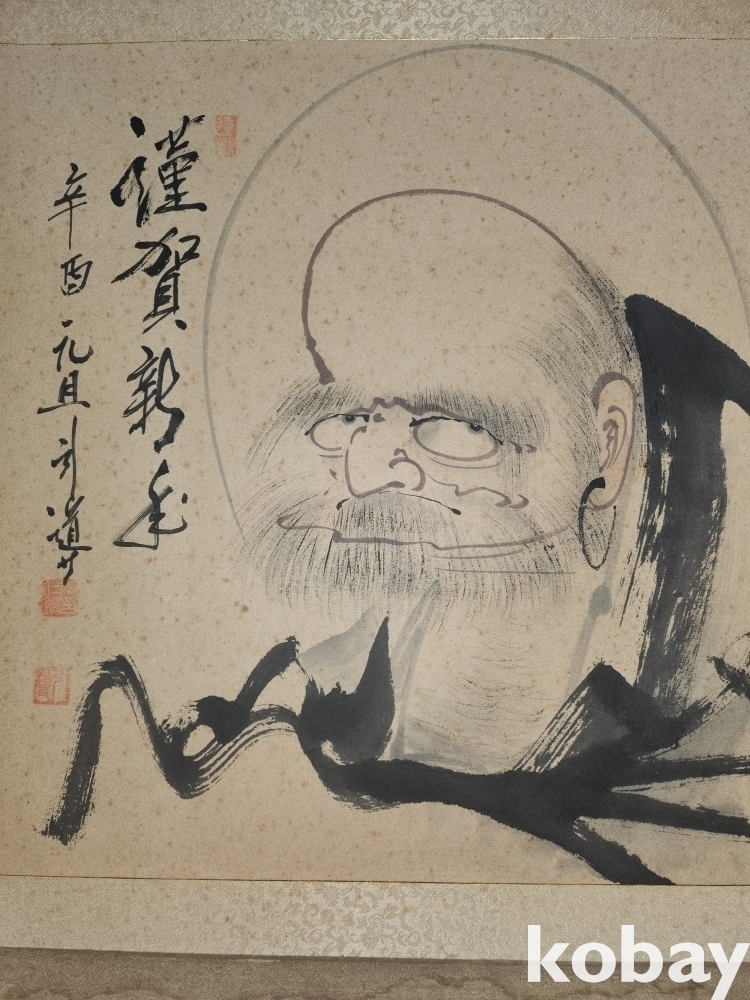 작가의 수결이있습니다, 얼룩과 액자상태는 불량합니다,