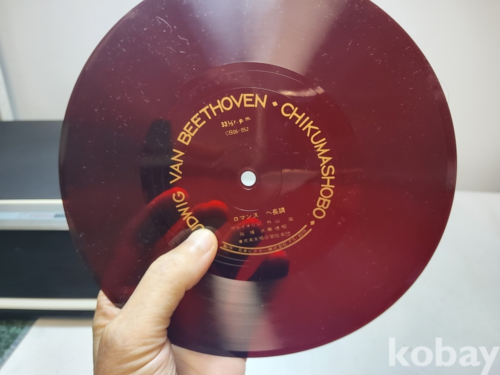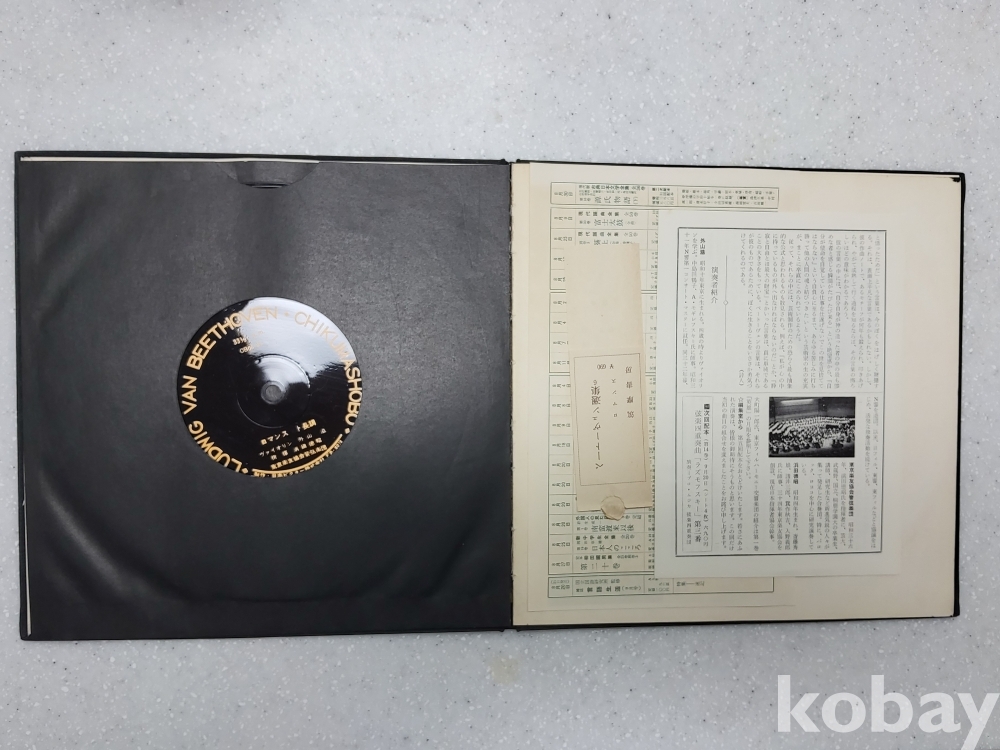 판매자도 처음 접하는 베토벤의 생애 등과 악보가 수록된 작은 책자 속에 보관된 외인빛의 조그많고 얇고 반투명에 지름 20cm의 LP음반 4매를 소개합니다.