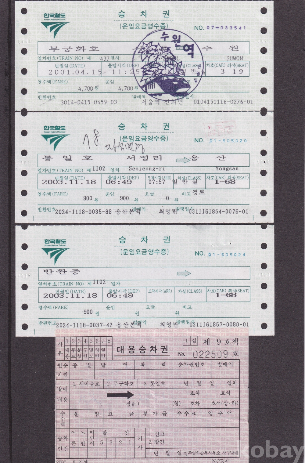 - [기차, 전철, 버스 승차권 모음展] - 무궁화호/통일호 승차권 및 대용승차권