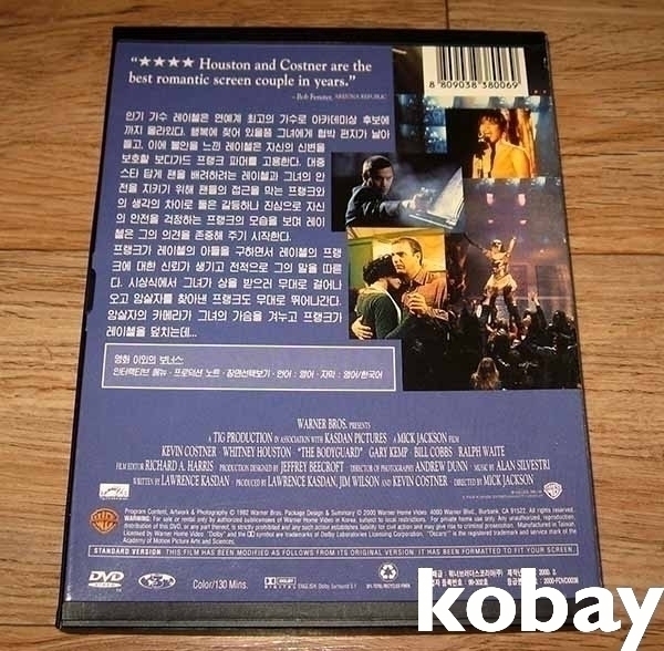 휘트니 휴스턴 케빈 코스트너 주연 고전영화 보디가드 DVD입니다. (1992년)