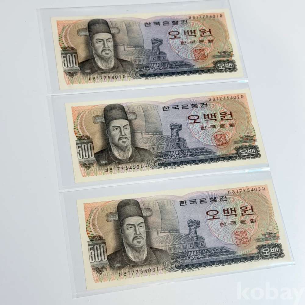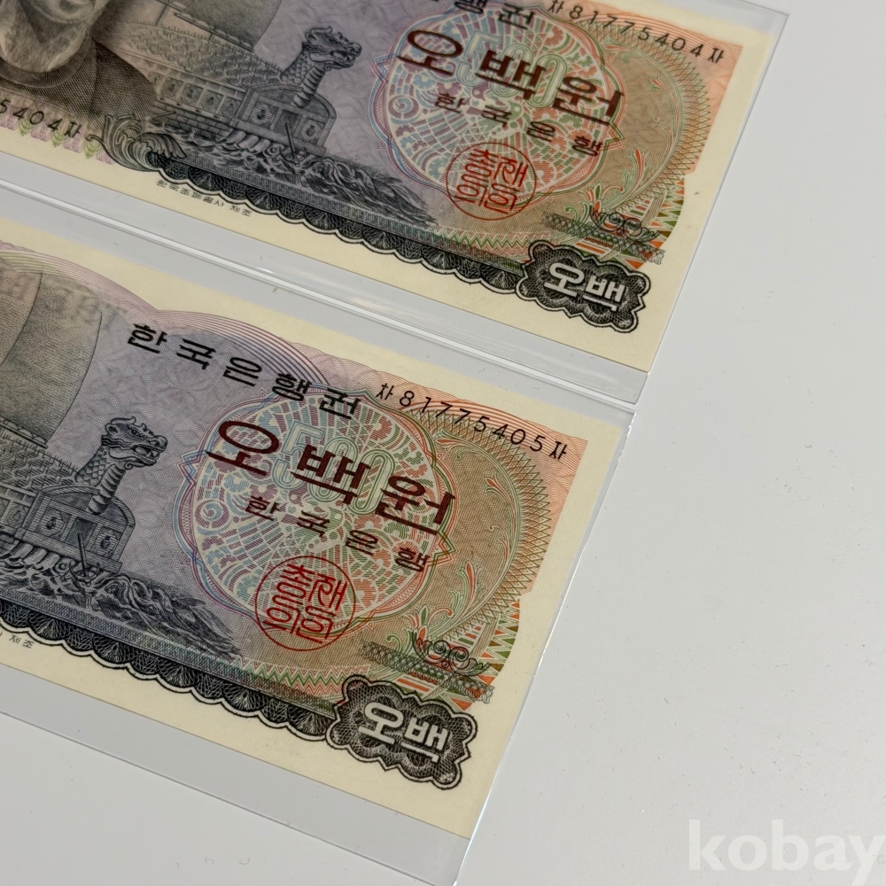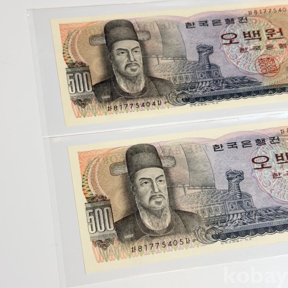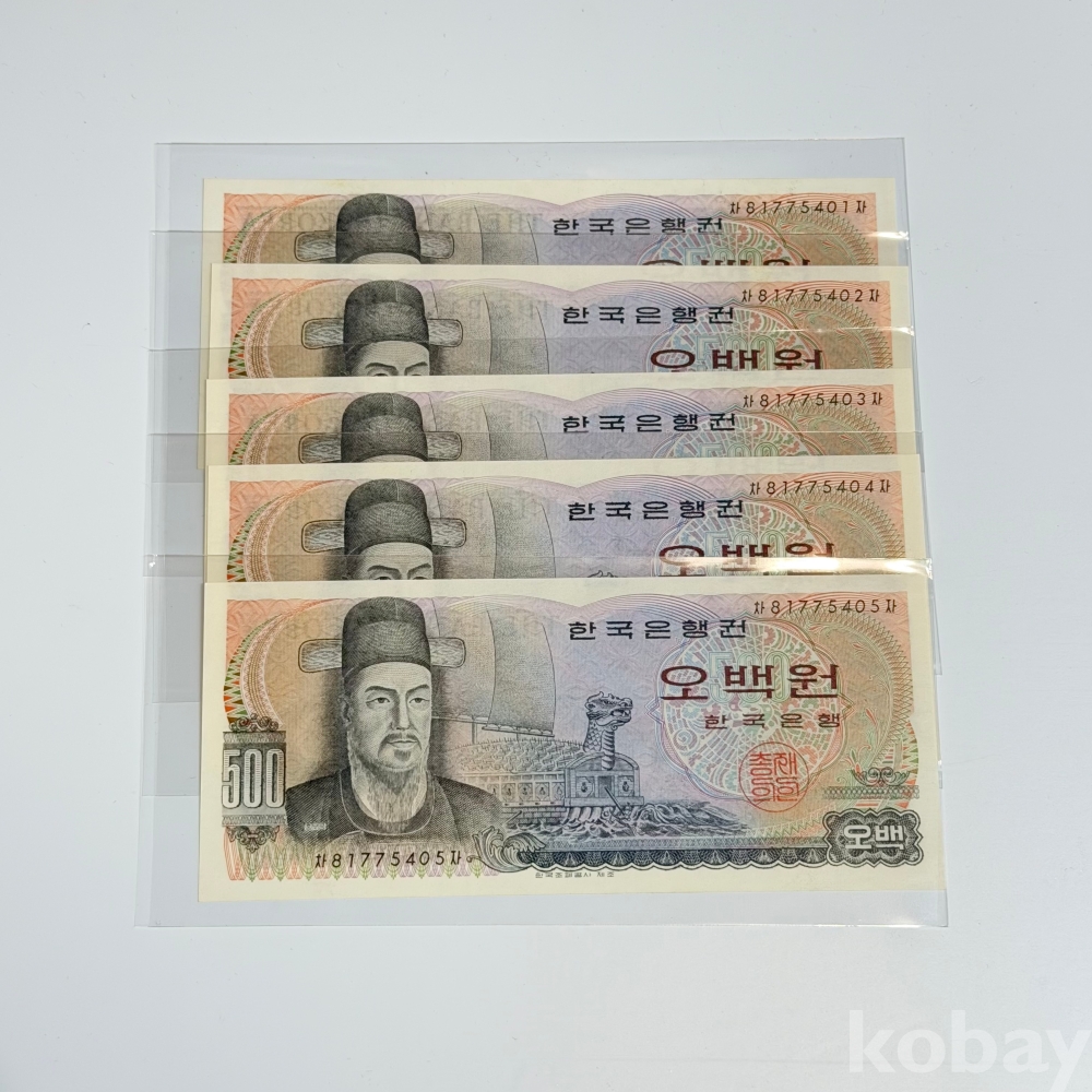 [연속번호★미사용] 한국은행 다 500원 이순신 오백원권 (차81775401~5자)