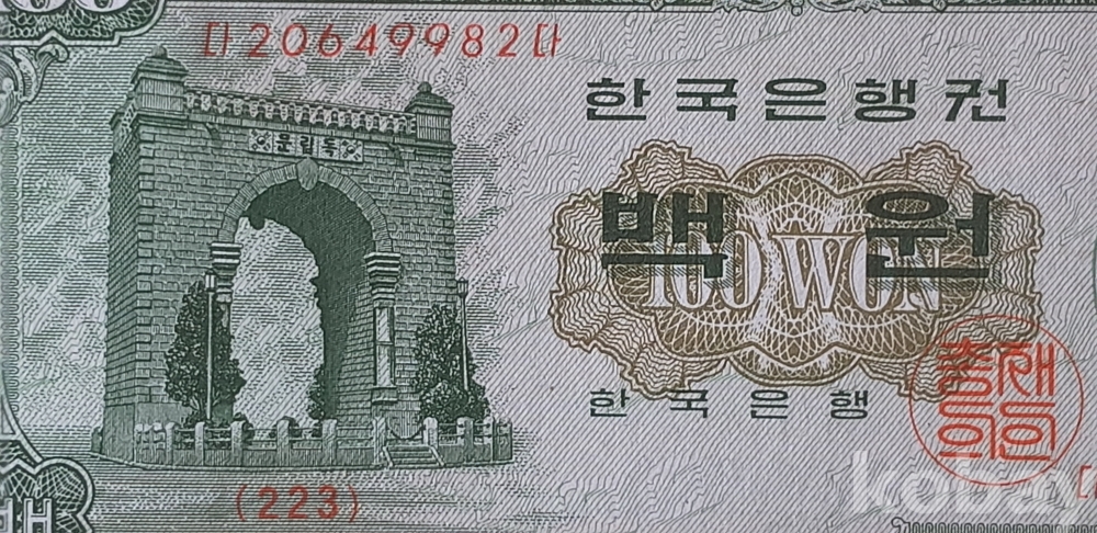 1964년 한국은행 나 100원권 경회루 약한 미사용급 입니다.