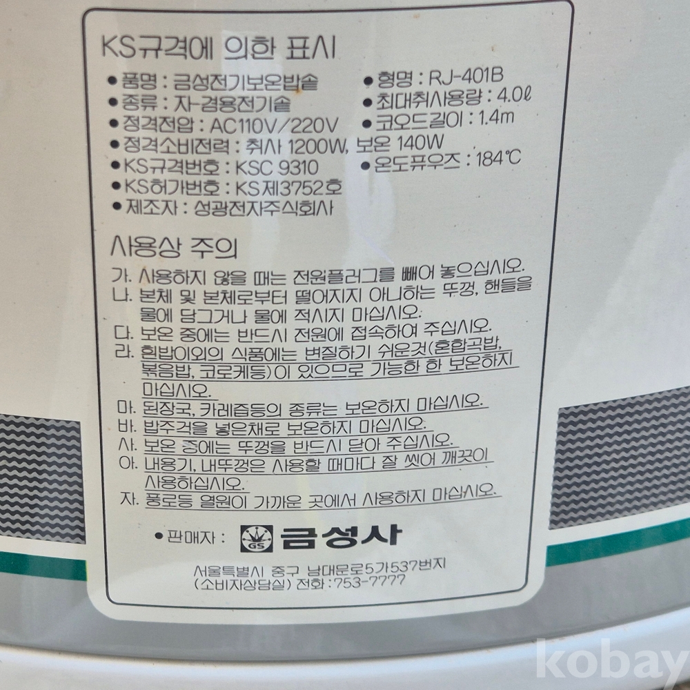 | 물품 크기 | 원직경 360 / 높이 260mm |