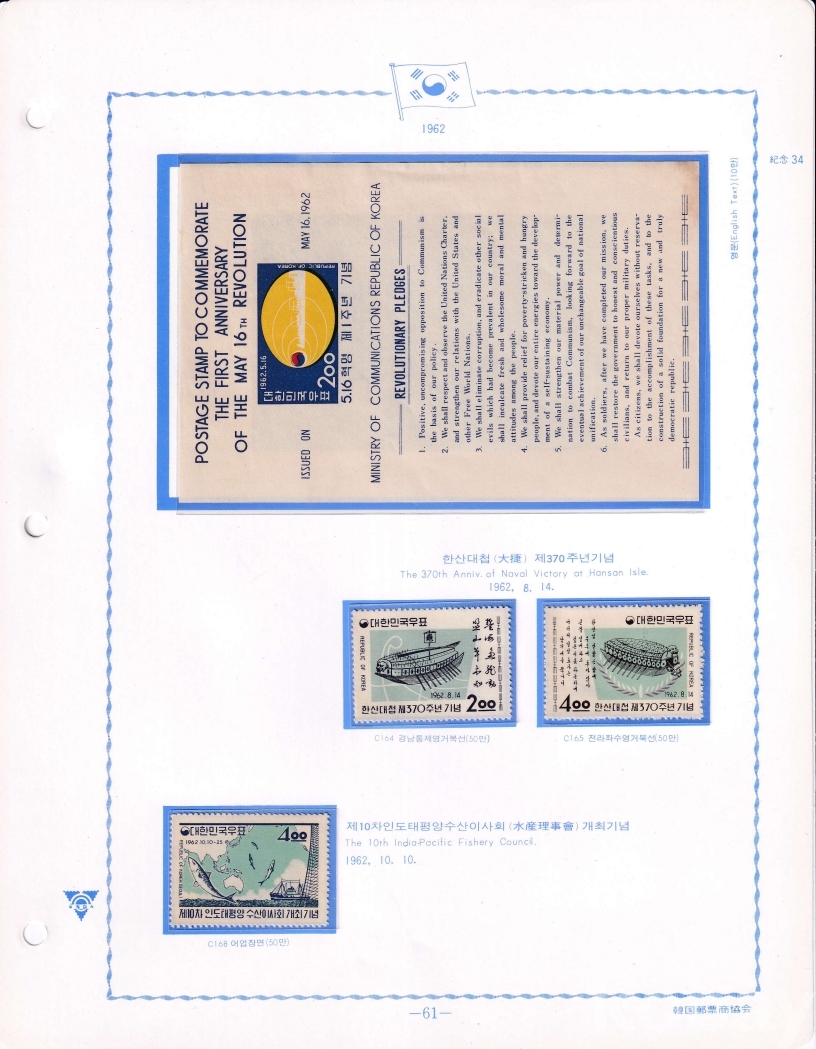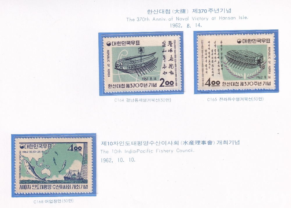- 한국우표앨범 모음展 - 한산대첩 제370주년 기념 우표 포함 3종(1962년)