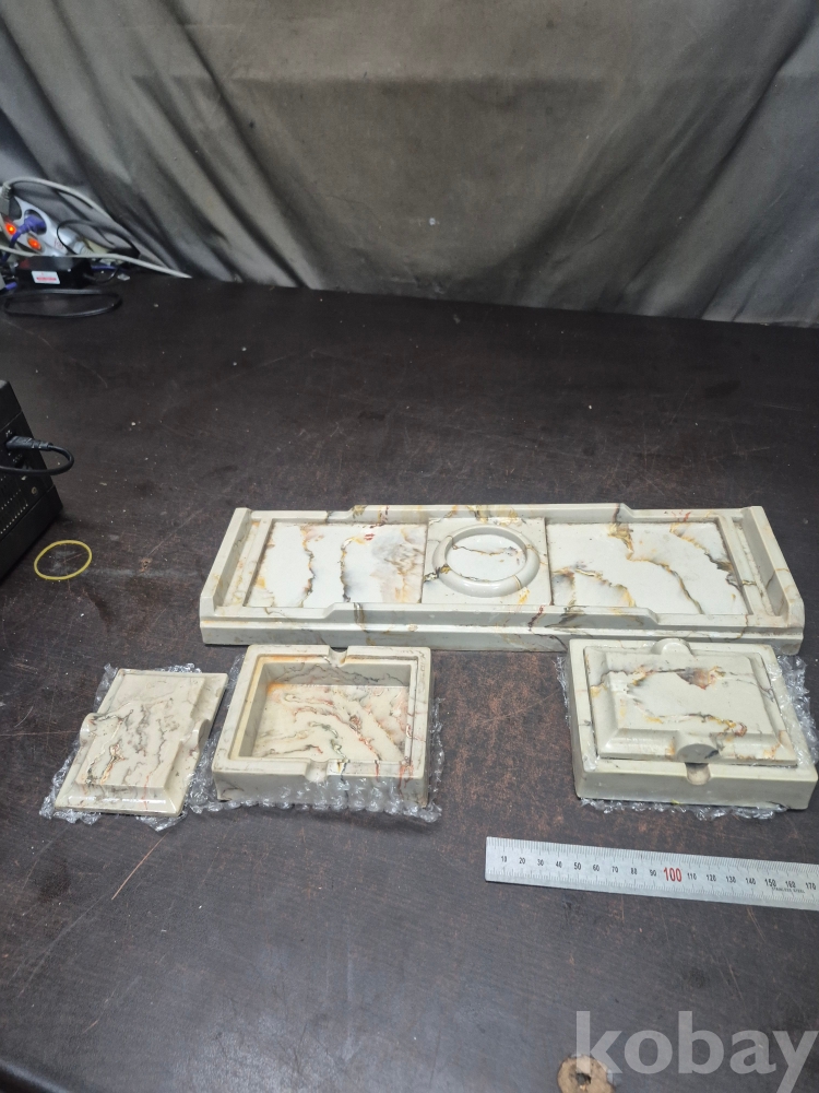 1960-70년대 재떨이와 담배합 재질 돌가루를 찍어 만든 재질 입니다 깨진곳 없엇요 42*13.5*7
