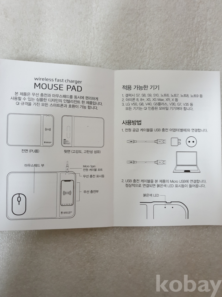 {천원경매} 10-2259 무선 고속 충전 마우스패드(박스파손)