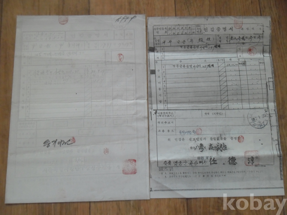 1979.83년 발행 인감증명서(영동군.서울강남구)