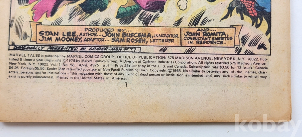 물 품 명 | MARVEL TALES : in the Blaze of Battle! / Vol.1 #58 Apr. 1975 / MARVEL COMICS GROUP / 미국 |