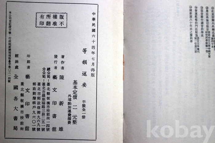 (중국서적) 等韻述要 (등운술요) - 1975년. 중국발행...