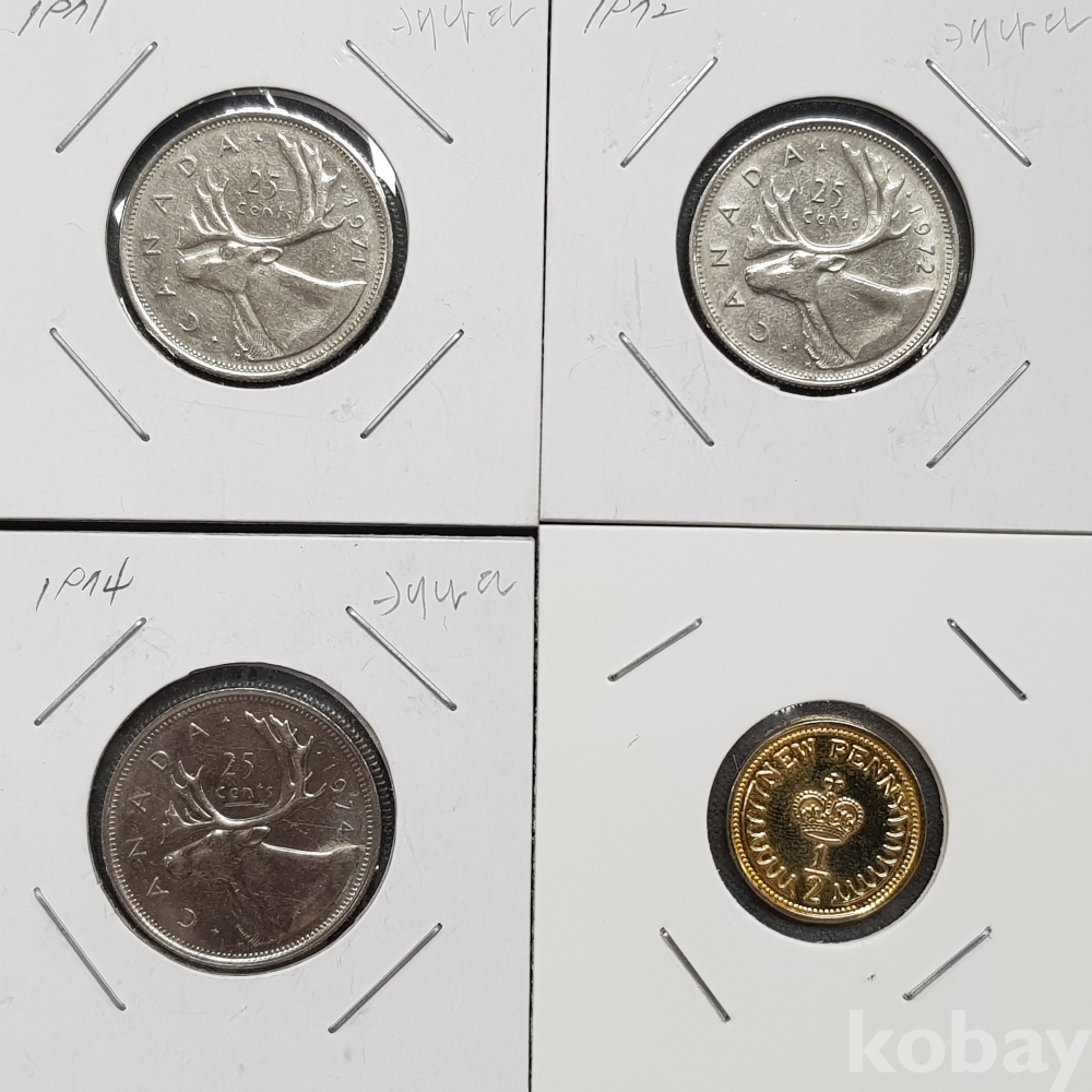 - 1971년 ~ 1974년 캐나다 25센트 주화 3종 모음