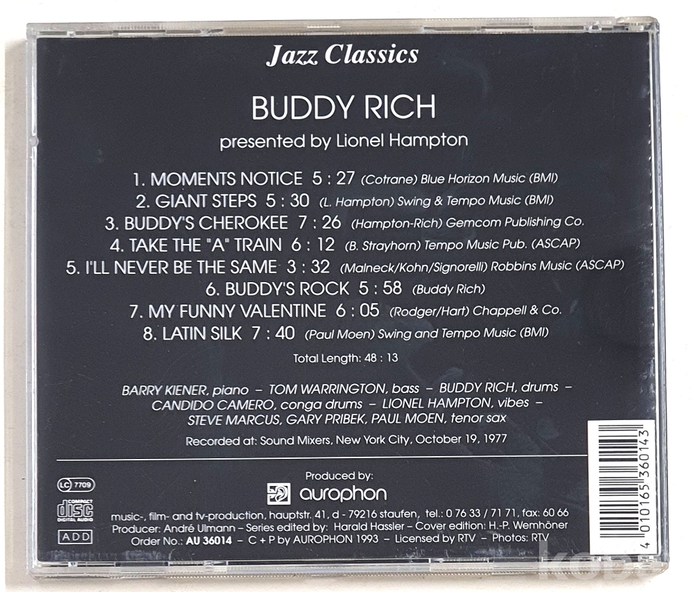 물 품 명 | 재즈 드러머 버디 리치 Buddy Rich CD / Jazz Classics / 1977년 |