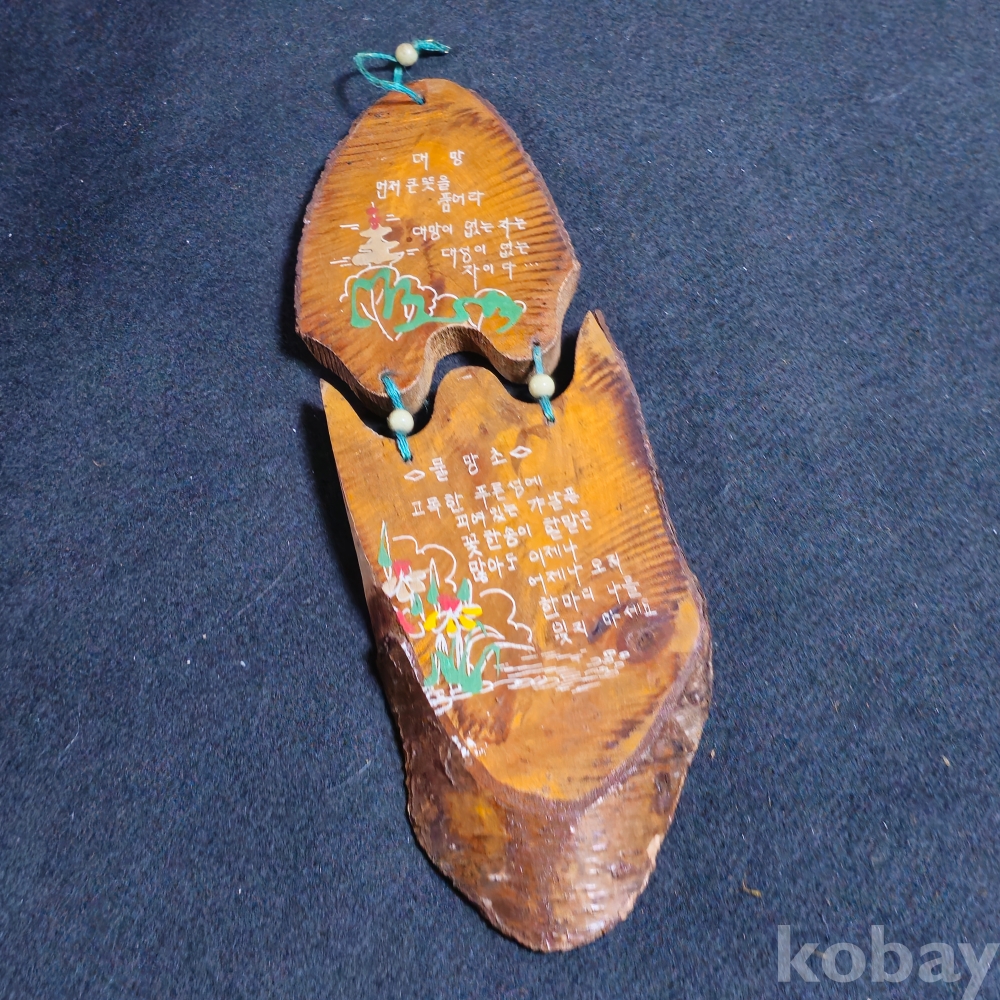 (((근현대사자료))) 1970/80년대 관광지에서 팔았던 물망초등 글귀와 그림있는 벽걸이 나무 기념품