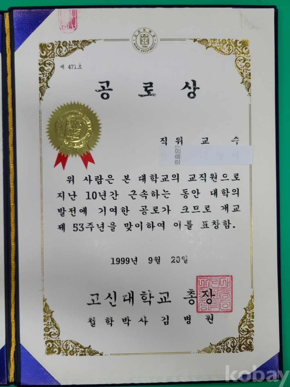 1999년 고신대학교 공로상/고신대학교 총장 김병원