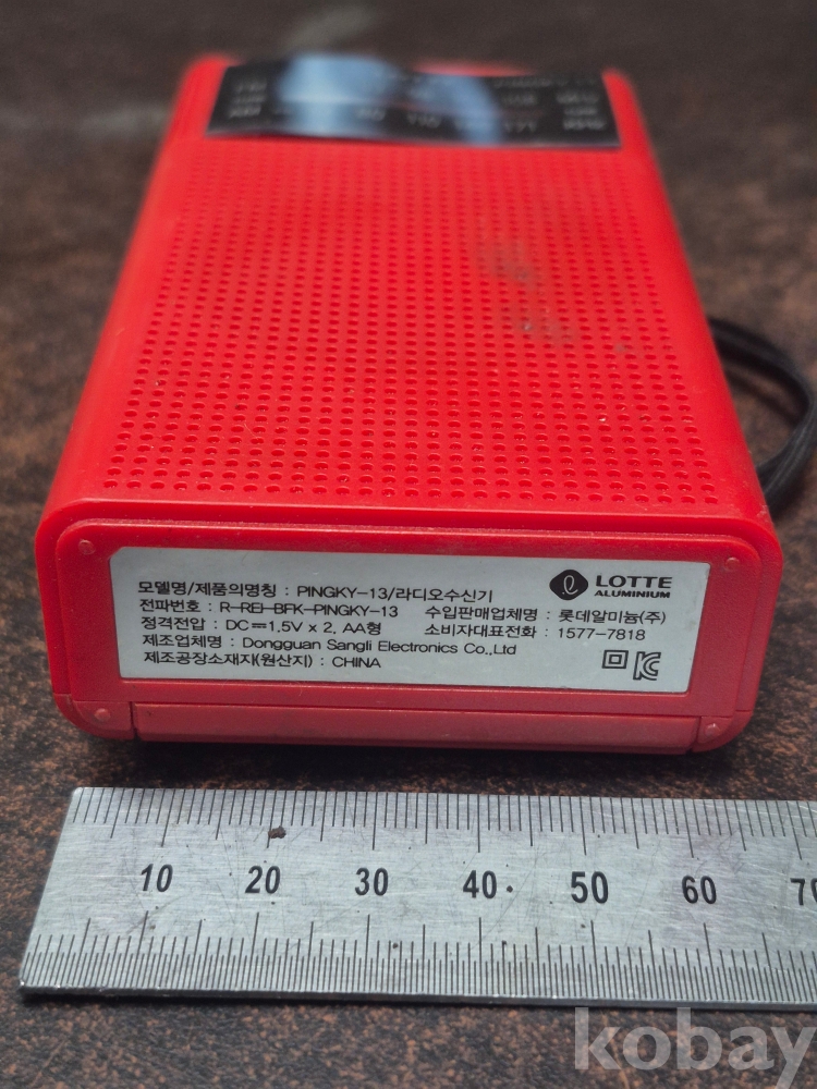 롯데 트랜지스터 소형 빨간색 휴대용 라디오 모델 PINGKY -13 7*3*12
