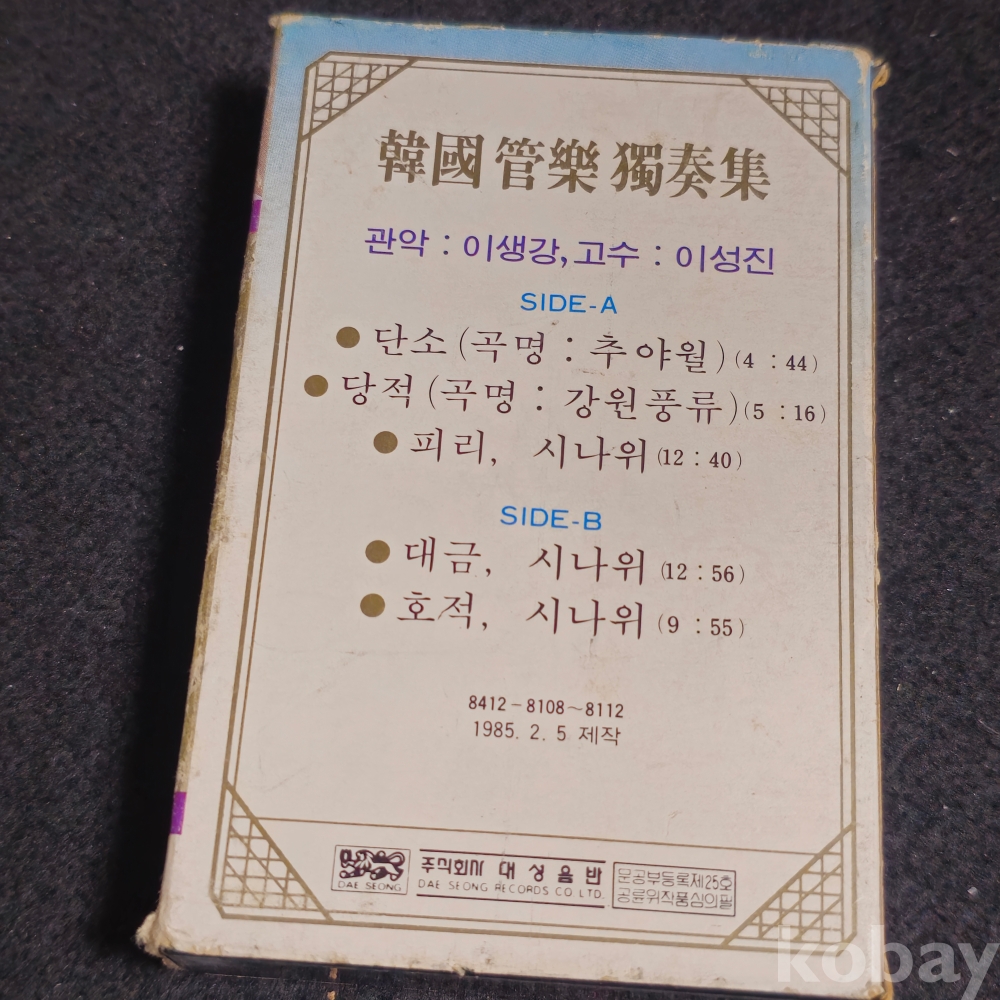 ((천원경매) (((카세트테이프))) 韓國管樂獨奏集 (관악:이생강/고수:이성진) 카세트 테이프 (대성음반)
