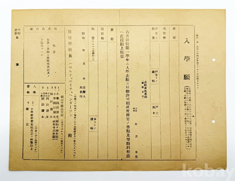 상품명 | 일제강점기 대구 계성학교 ‘입학원’ 1점 | ||