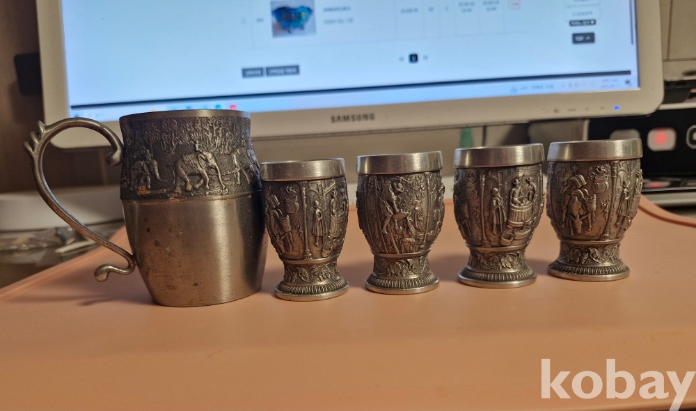 살제 사용할 수 있는 주석으로 만든 컵 세트입니다.