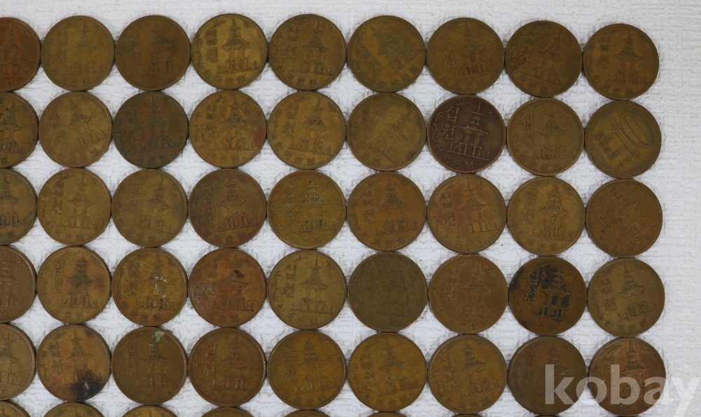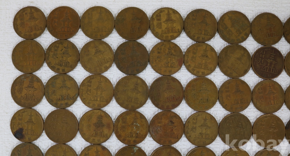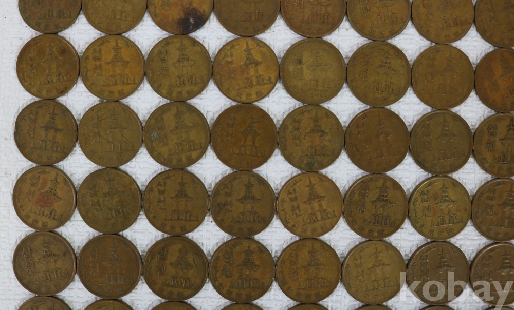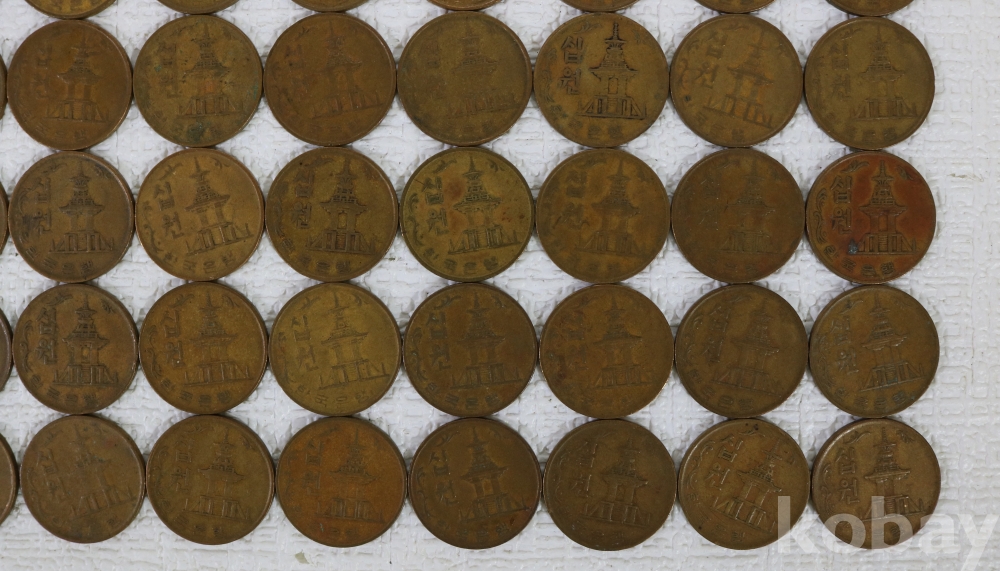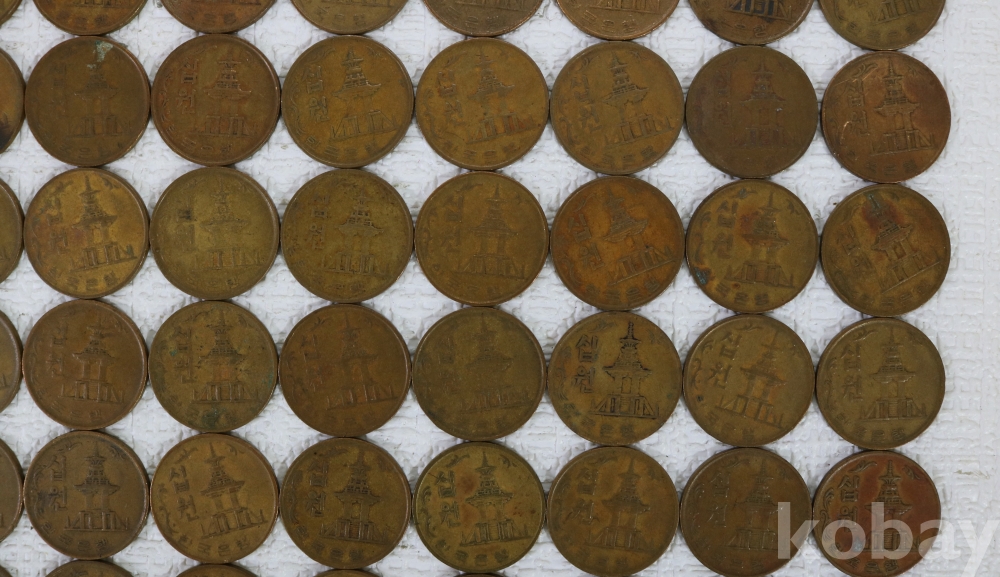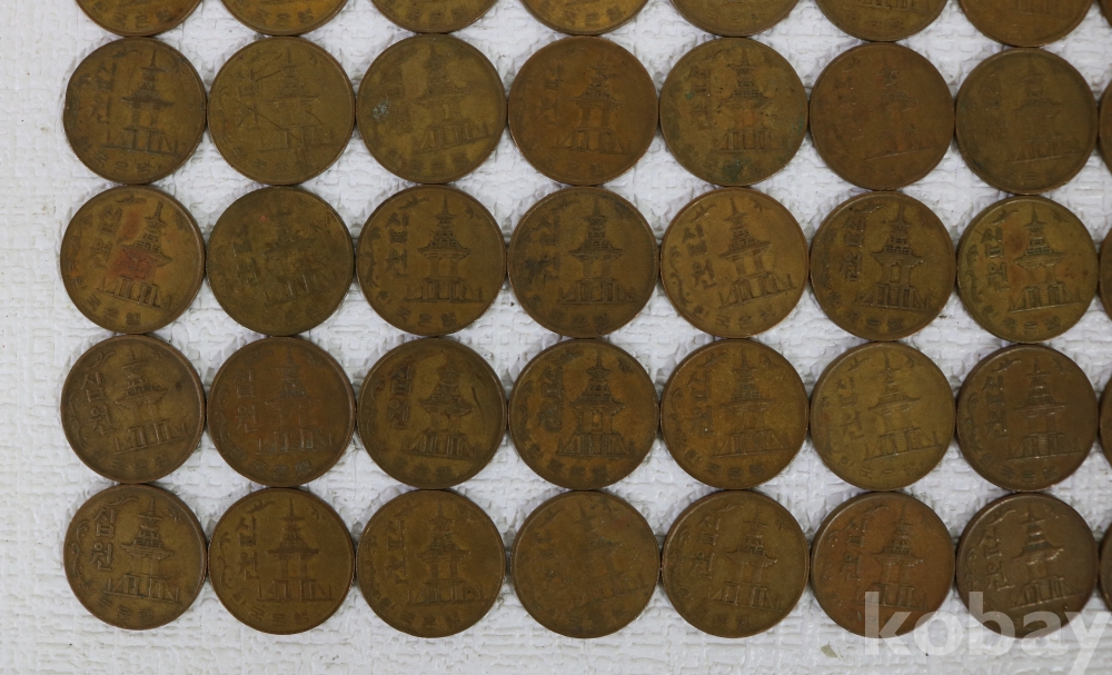 적동 주화의 경우 세척하면 아주 보기좋게 연도별로 나열하여