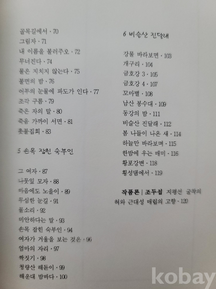조두섭 교수(시인)의 해설. 6부 77편의 작품으로 구성.