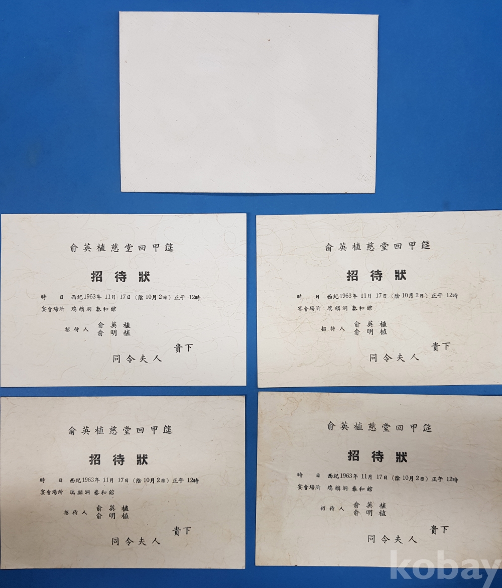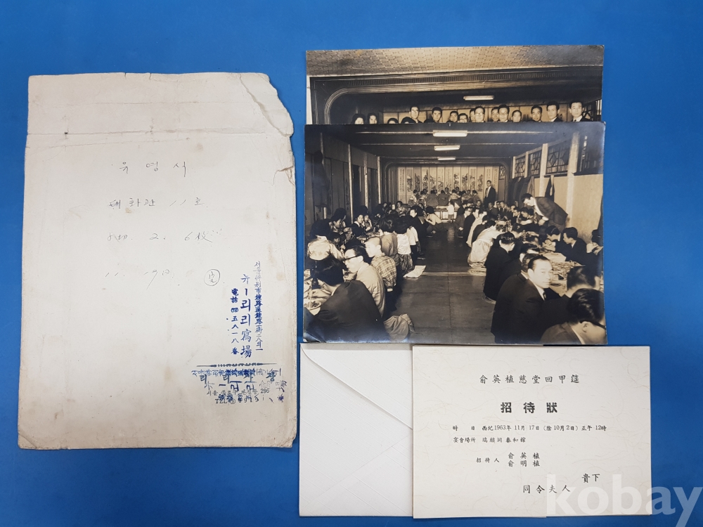 **** 1963년11월17일 서울 태화관에서 거행한 회갑연 자료 招待狀, 사진 2장, 봉투 등