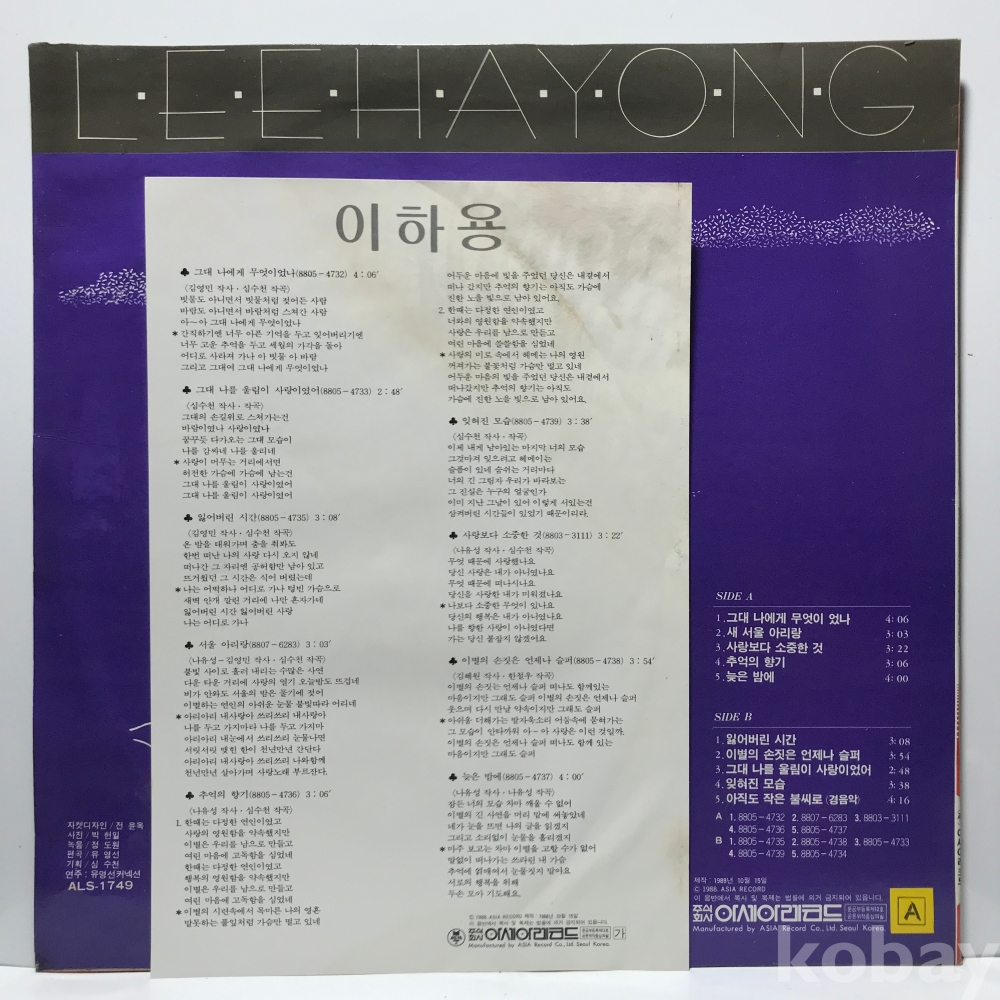 LP 35,750-55 이하용 - 그대 나에게 무엇이었나 . 88 아세아 자켓 EX 알판 NM