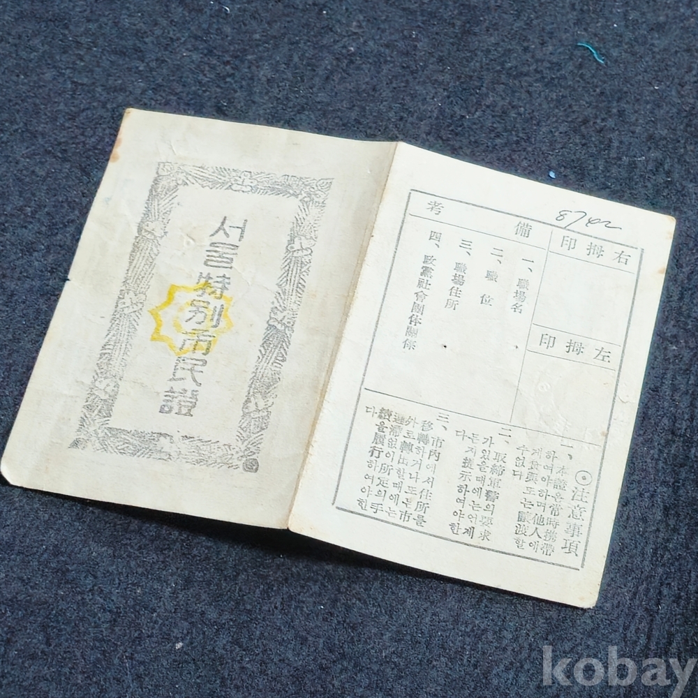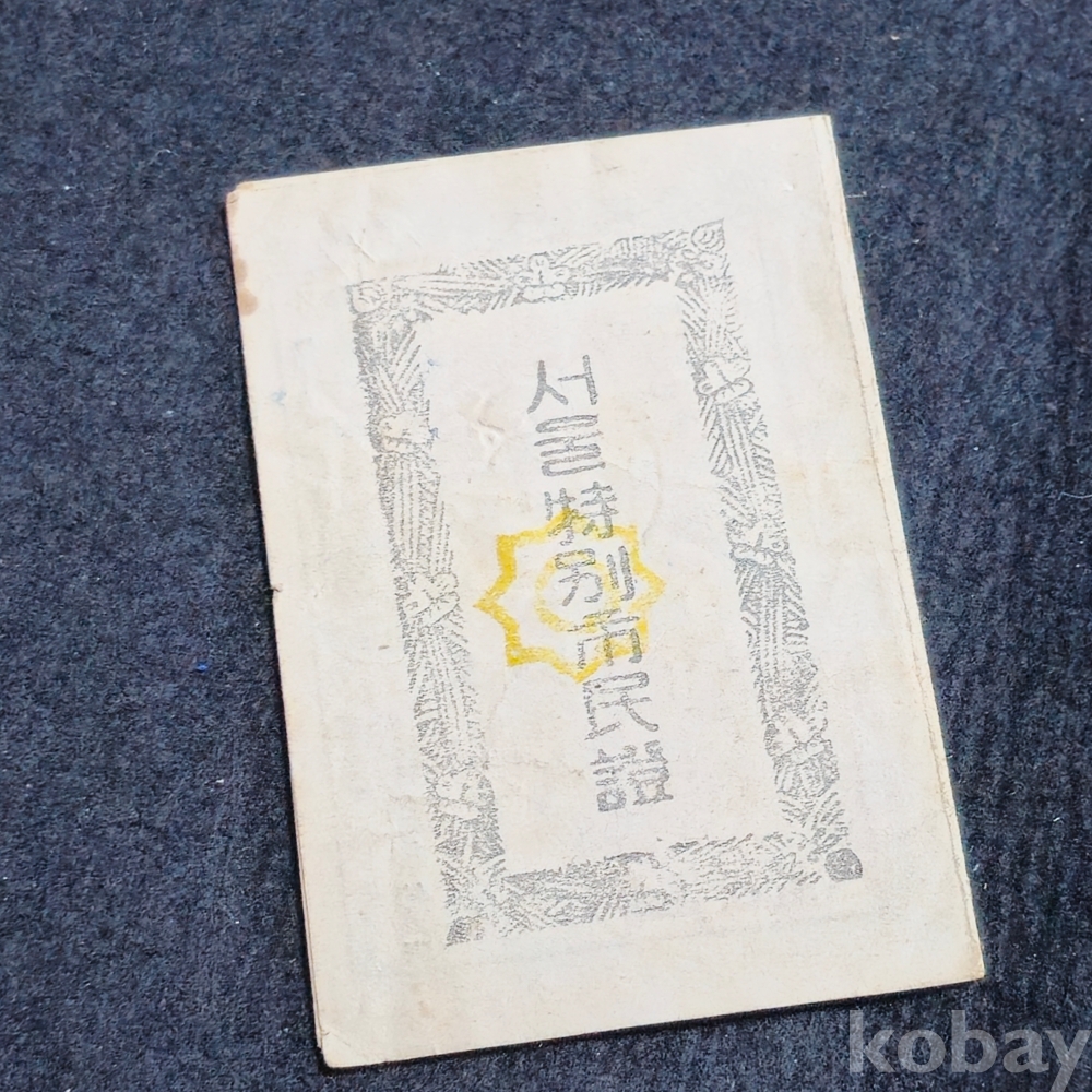 (((근현대사자료))) 단기 4293년 ( 서기 1960년) 서울 特別市民證
