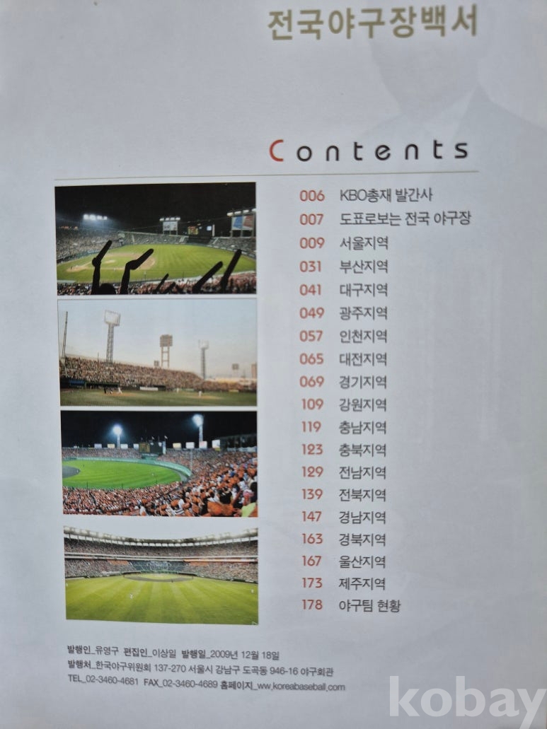 설명: 이 책은 전국에 산재해 있는 우리나라 야구장 전국 야구장 백서 - 한국야구위원회 발행책입니다