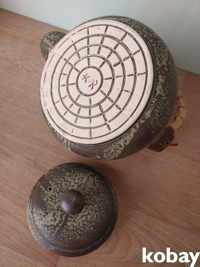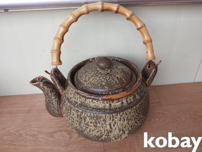 대나무 손잡이 도자기 주전자 입니다.