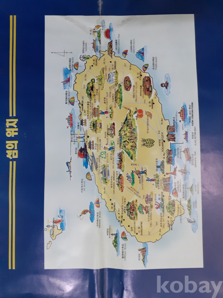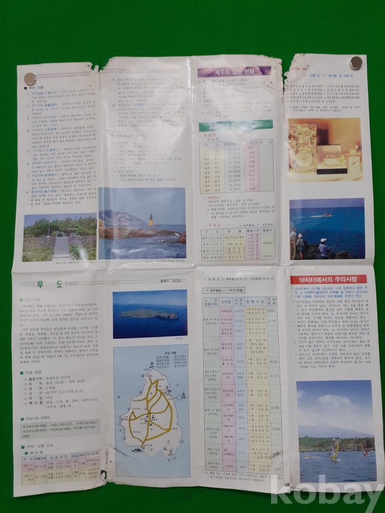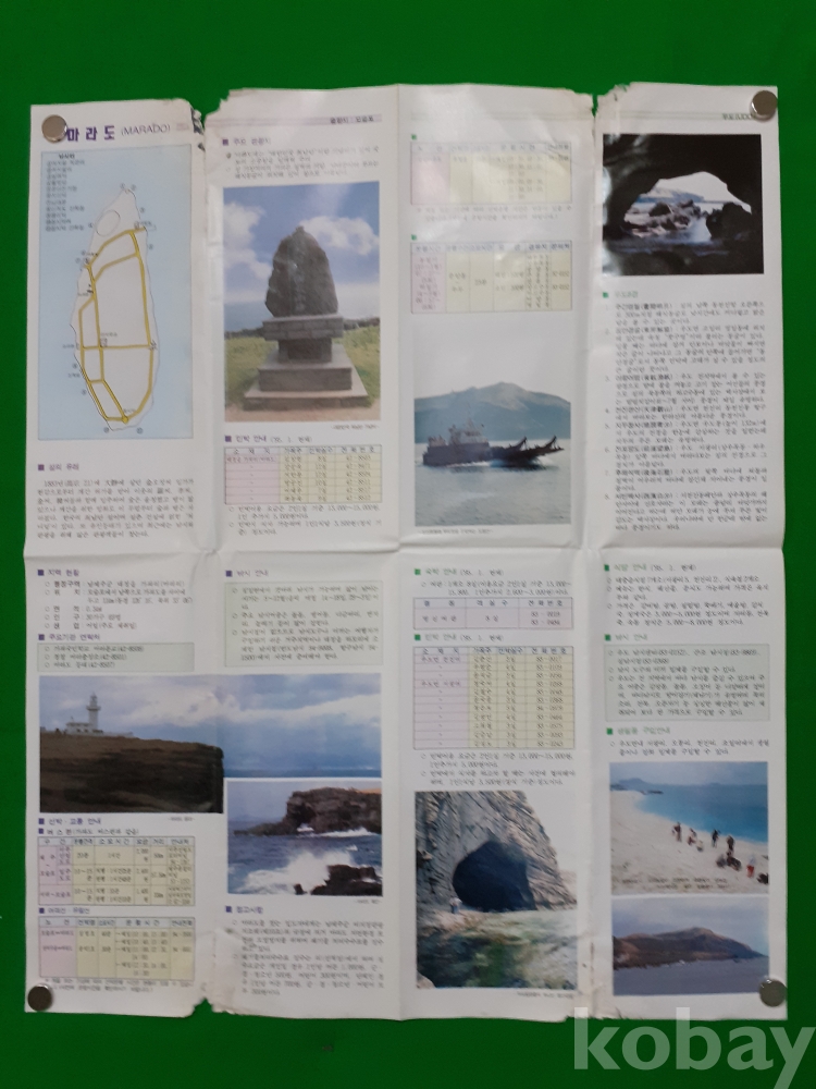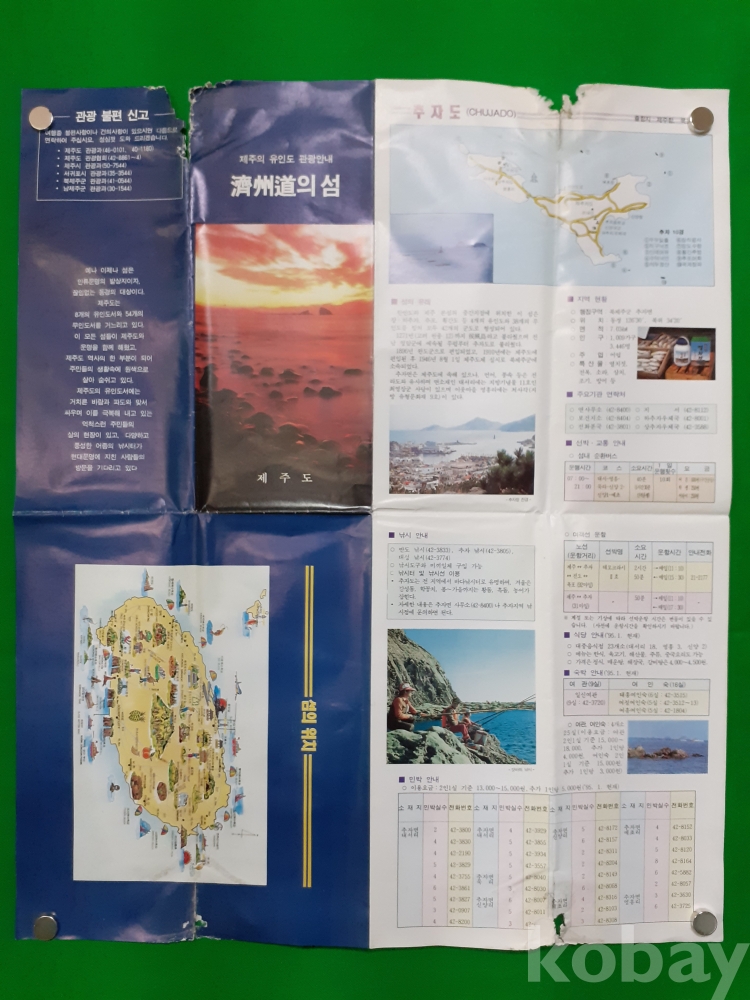 제주도의 섬 안내지는 접혀진 곳 떨어져 나간 부분 있습니다