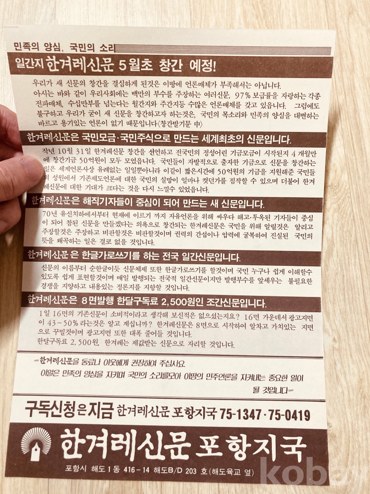 [민주화 운동 자료] 한겨레 신문 창간 예정 안내문
