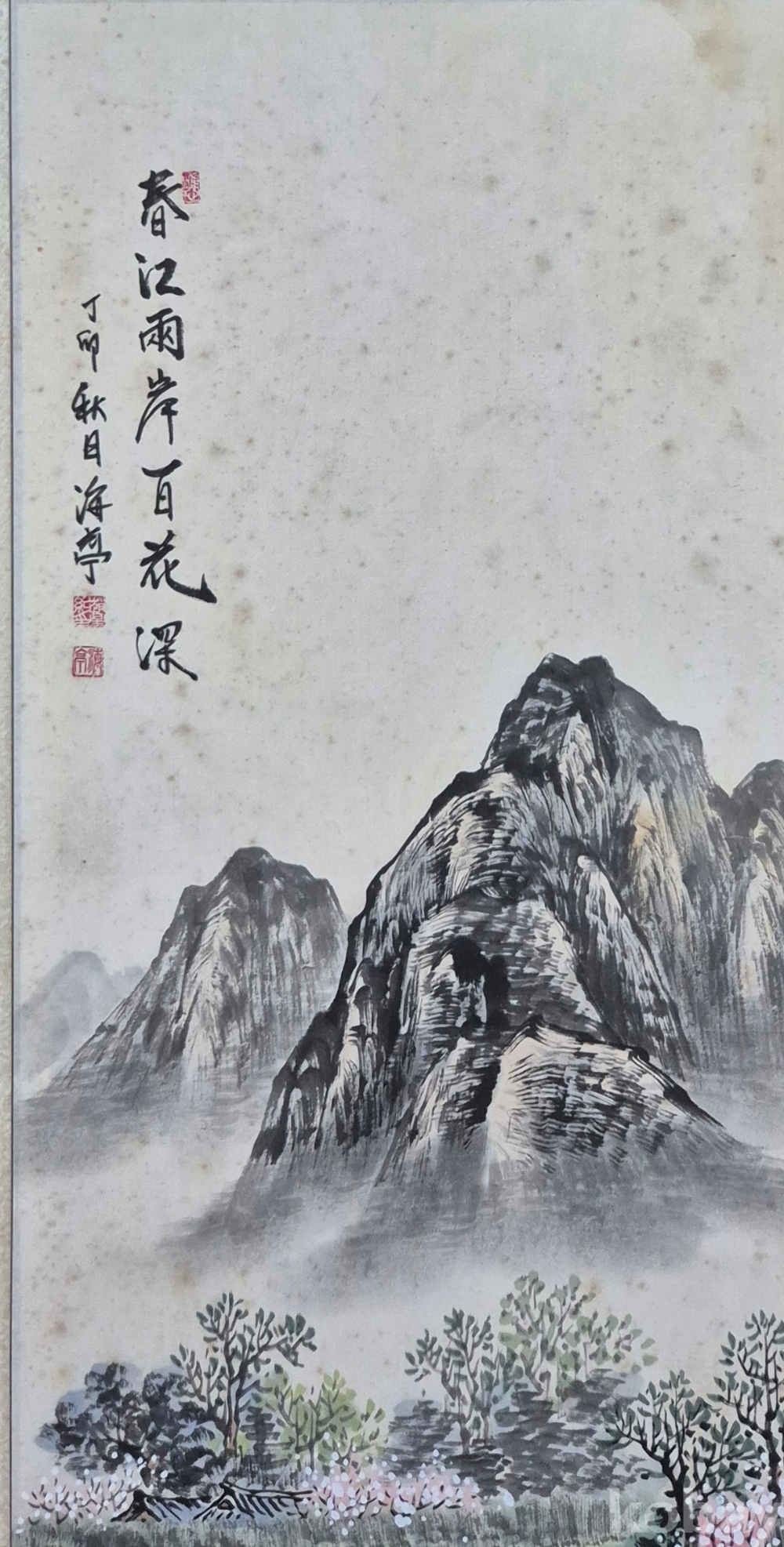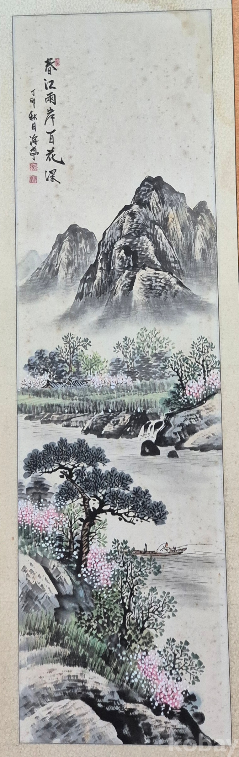 작품성 좋은 상당한 수준의 화가분 작품 추정되는 춘경 산수화'이오니 작품 이미지상 수결 및 낙관'등 두루 잘 참조하시고