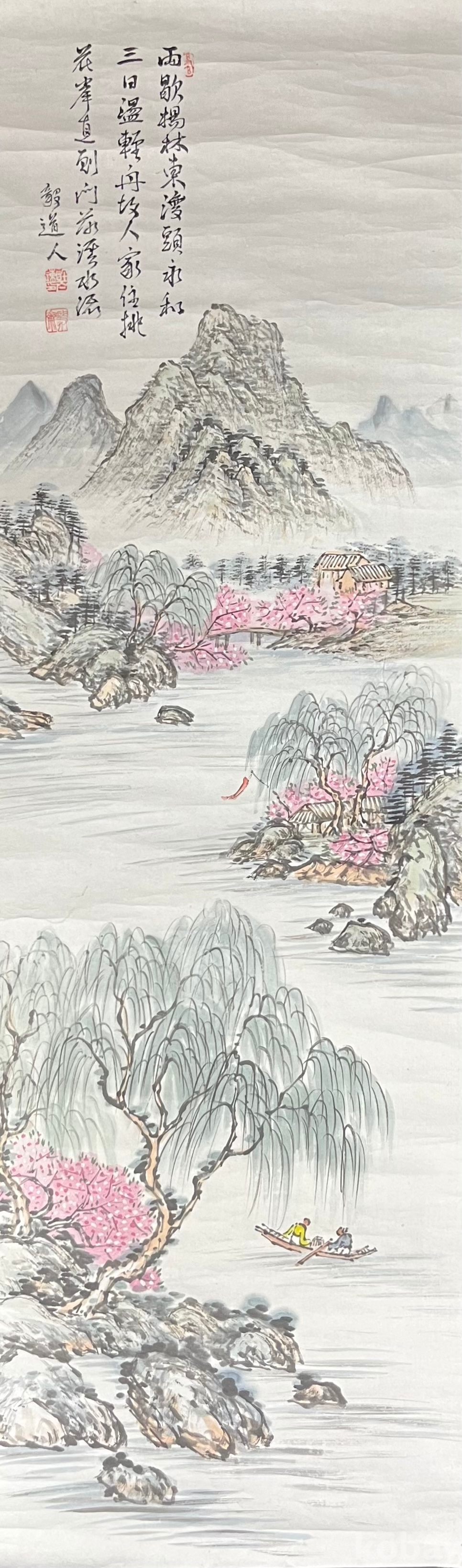 이 작품은 근대 한국 남종화의 거장 의재 허백련이 그린 봄 강산의 정경을 담은 수묵담채화입니다.