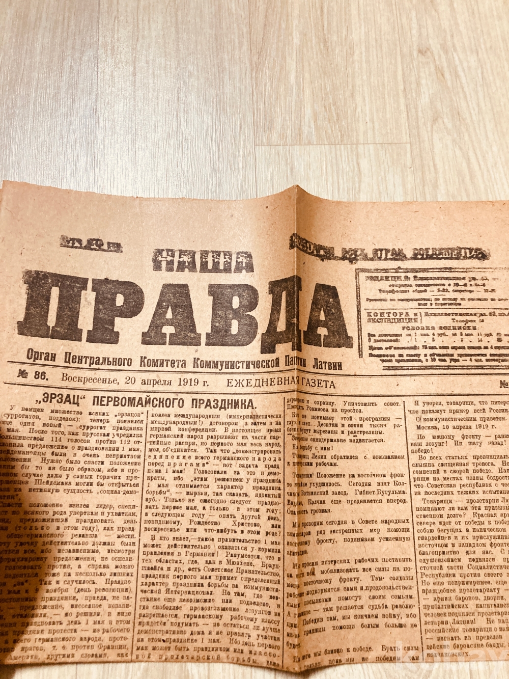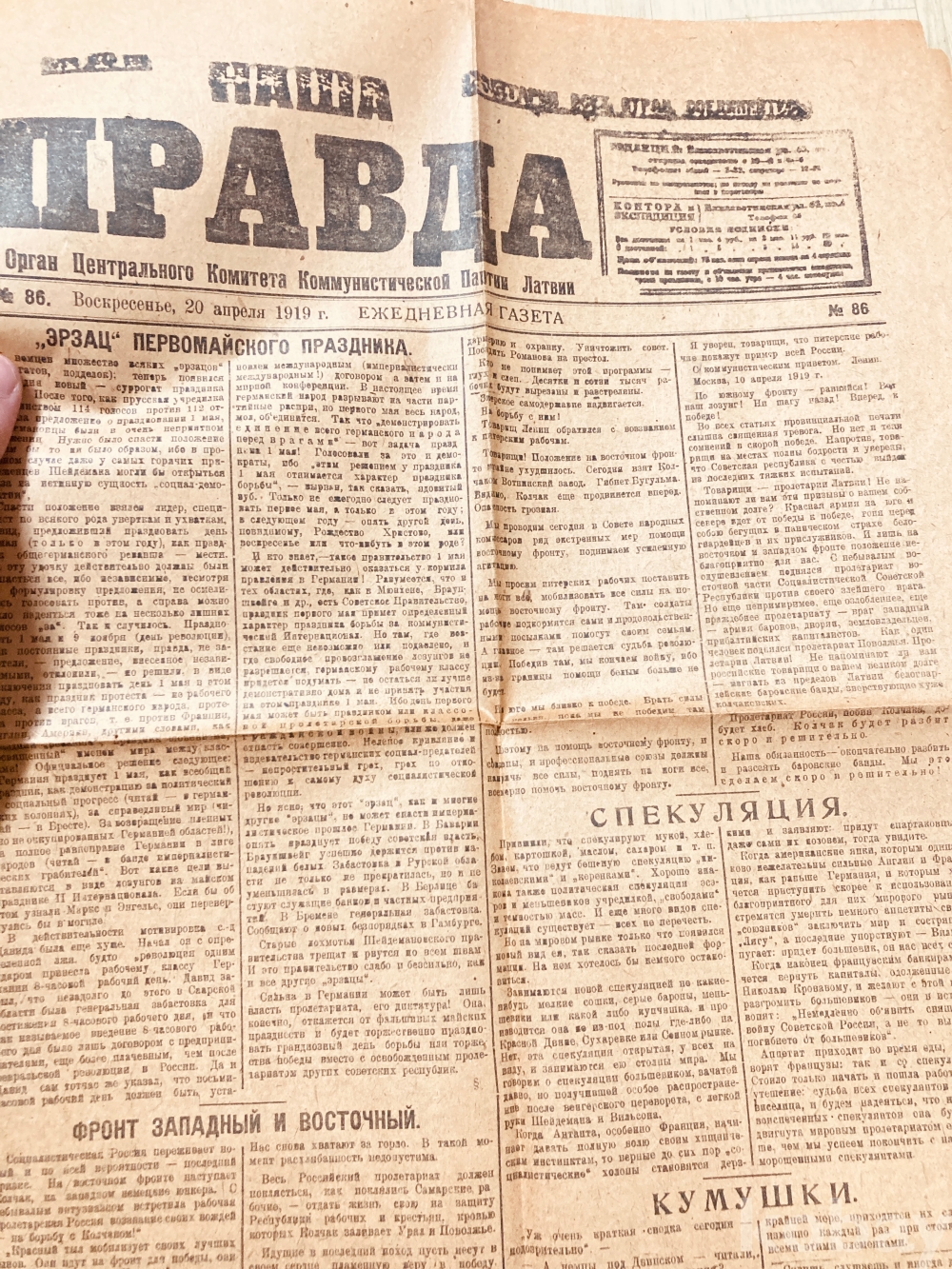 (쁘라브다 라트비아 지부 발행본, 86호면 일간지였으므로, 창간 86일 뒤 발행분입니다)