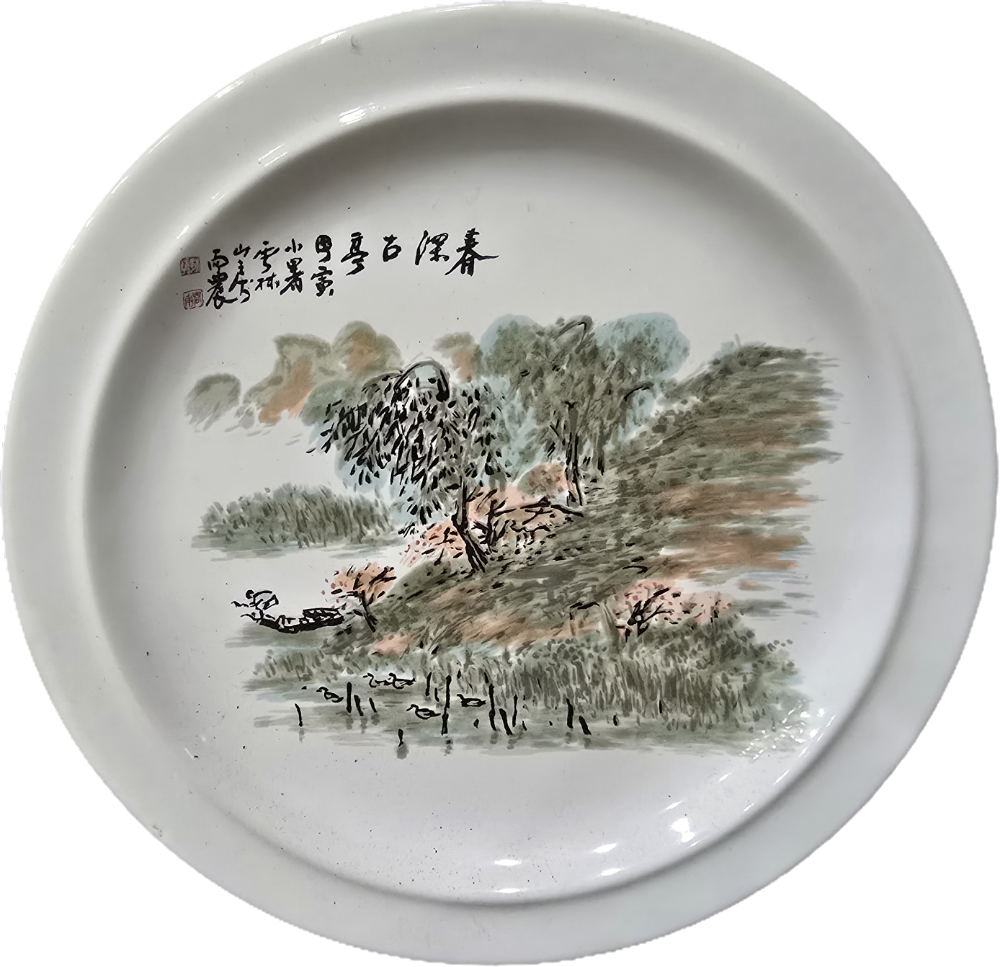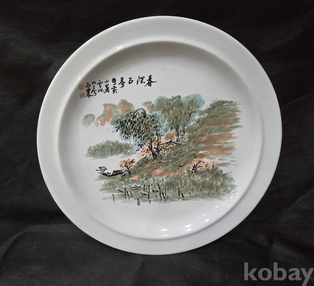 명품도자기/ 백자 분채원반 남농 &행남사 콜라보 작품