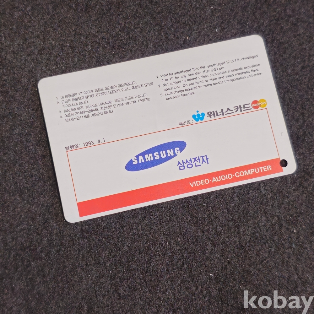 (((근현대사자료/엑스포자료))) 1993년 대전세계박람회 (EXPO'93) 야간할인입장권 카드 (청소년 4000원)