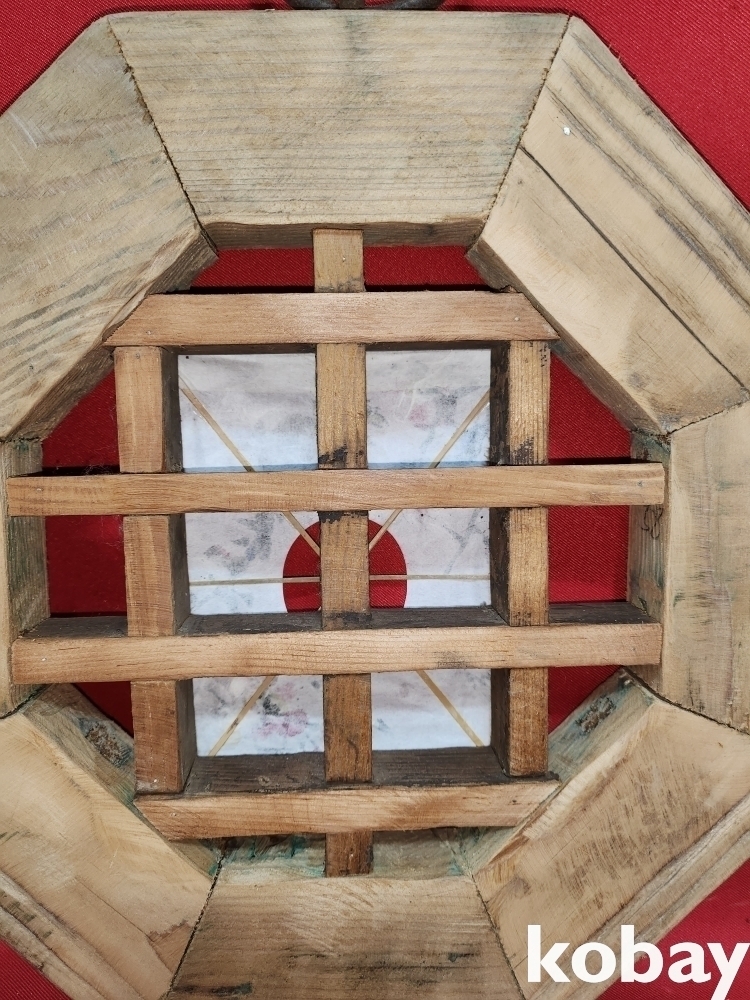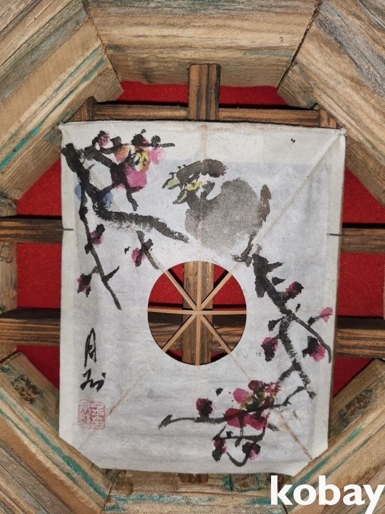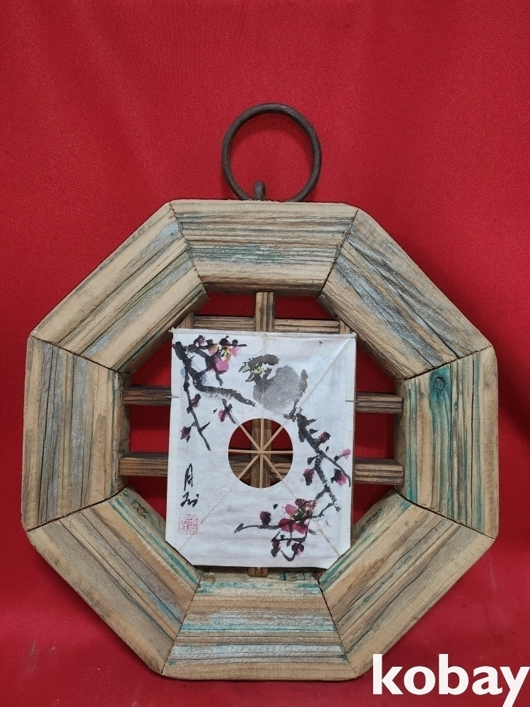 나무로 만든 8각형 문짝에 화가의 작품 매화그림이 고유에 민속품 참연에 그려진 작품입니다,