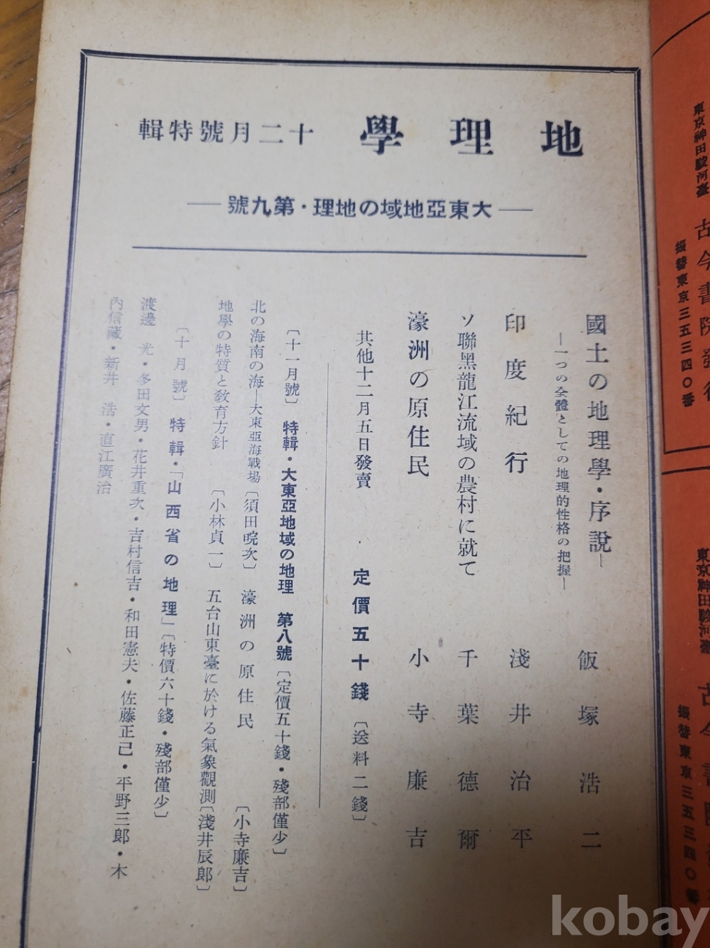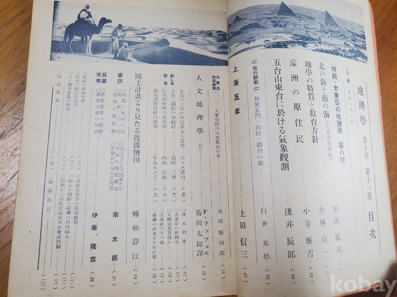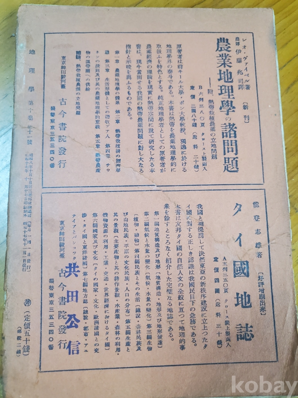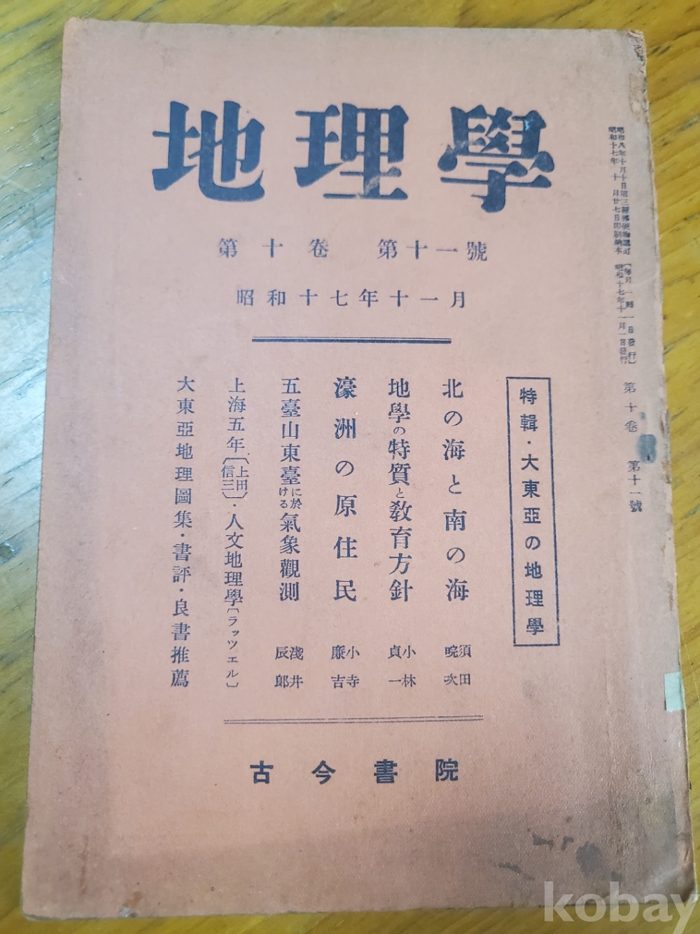 1. 지리학 제10권 제11호, 고금서원, 1942년, 98쪽, 일본어판, 상태 상, 사진 참조