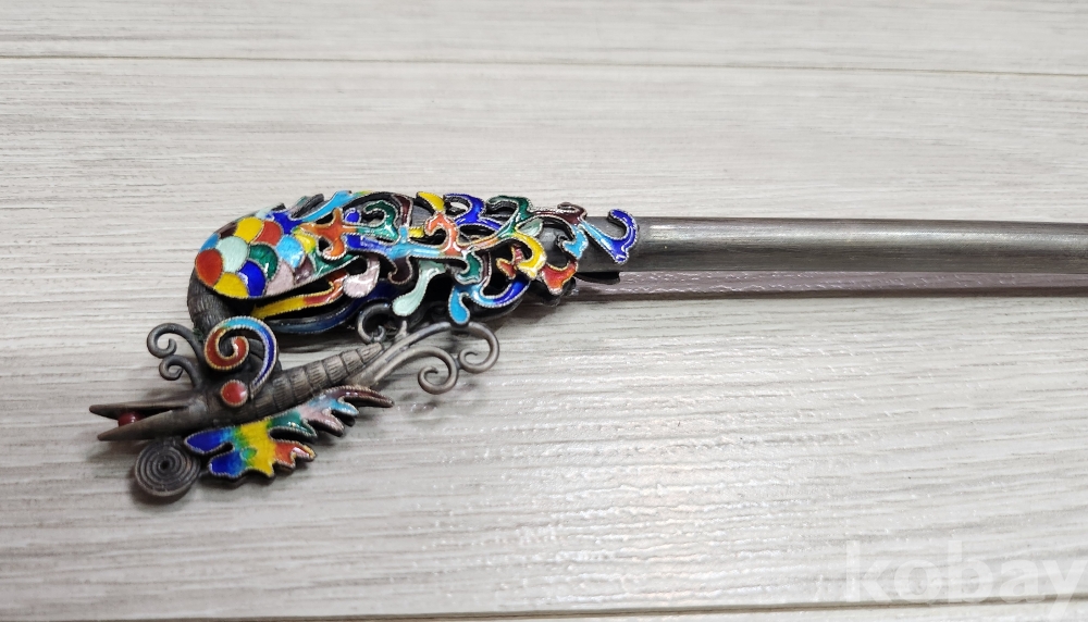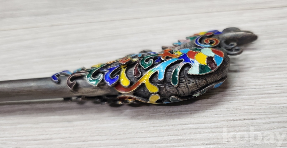 오래된 은 칠보 대형비녀 입니다 상태 매우 양호합니다 사진 여러장 올리니 참조바랍니다