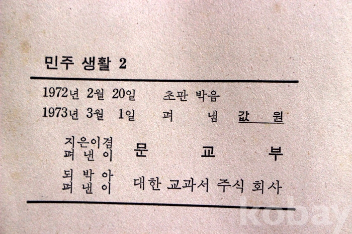 (교과서) 민주생활 2 : 중학교용 - 1973년 / 대한교과서 발행