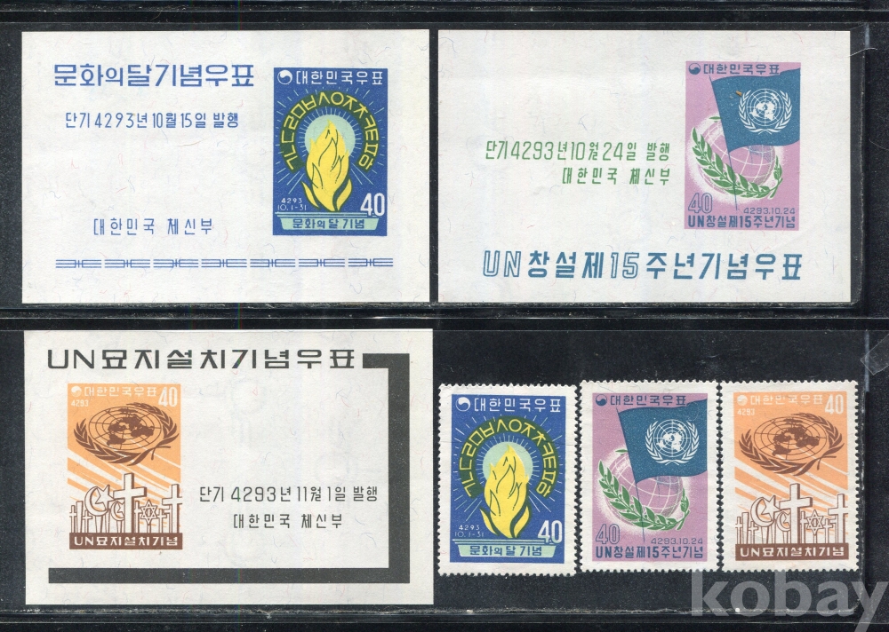 - [시트/우표] 1960년 미사용 시트 & 우표 3종 4 (All MNH : Mint Not Hinged) : 이미지 참조하세요