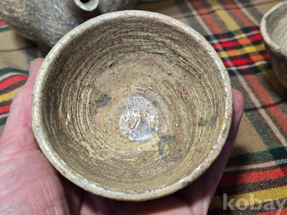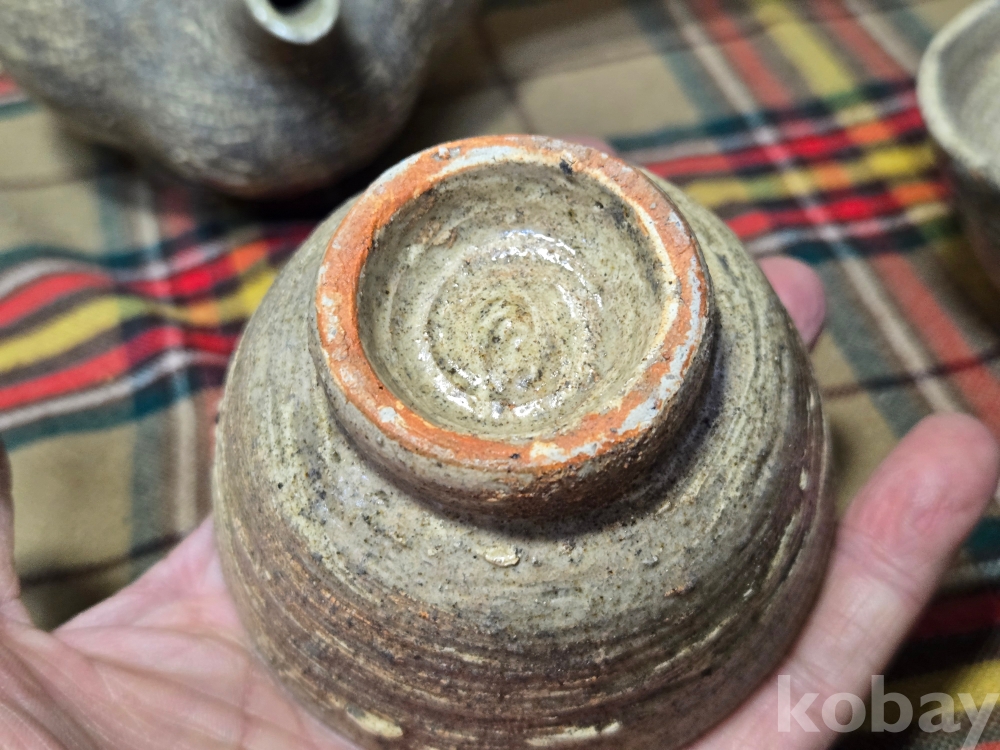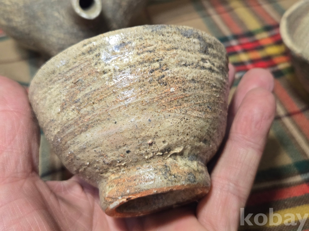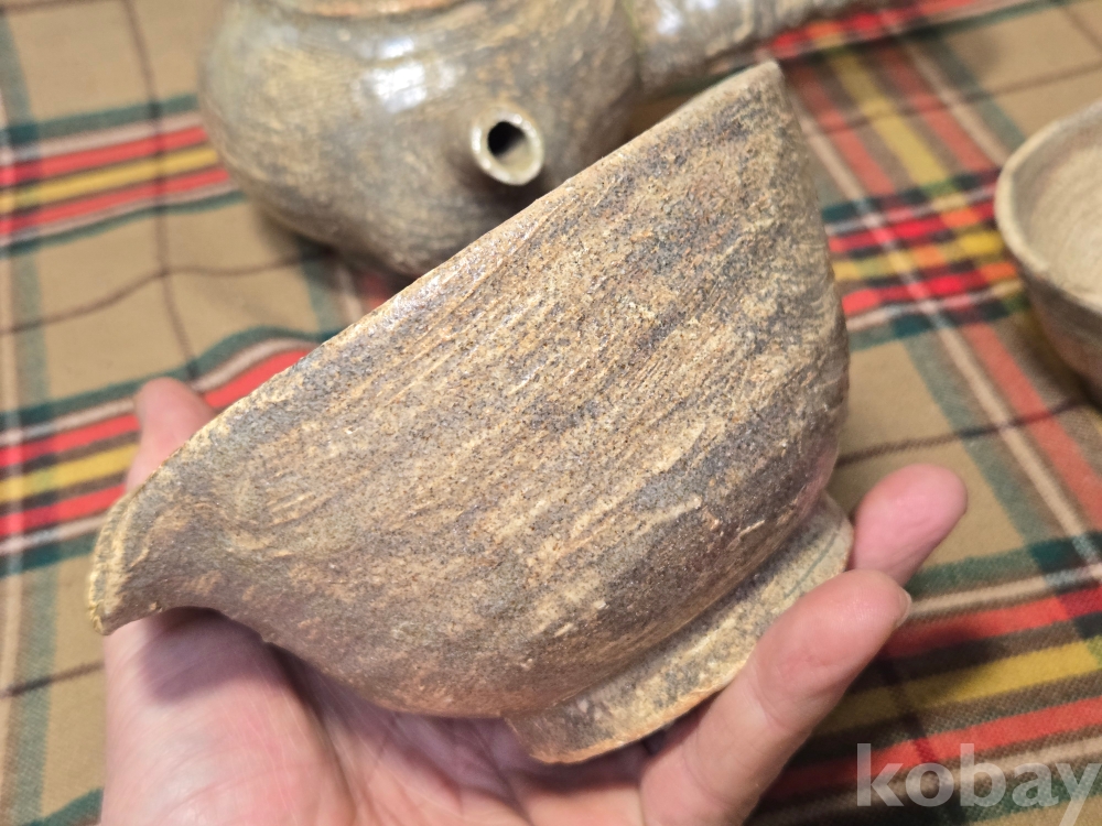 거친 연질의 웅천 태토에 거칠고 과감하며 화려한 미감을 갖는 귀얄분청다기세트..작품 수결없으나 작가로부터 직접 받은 다기로 진품 보장합니다.