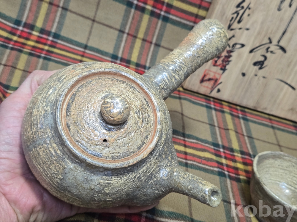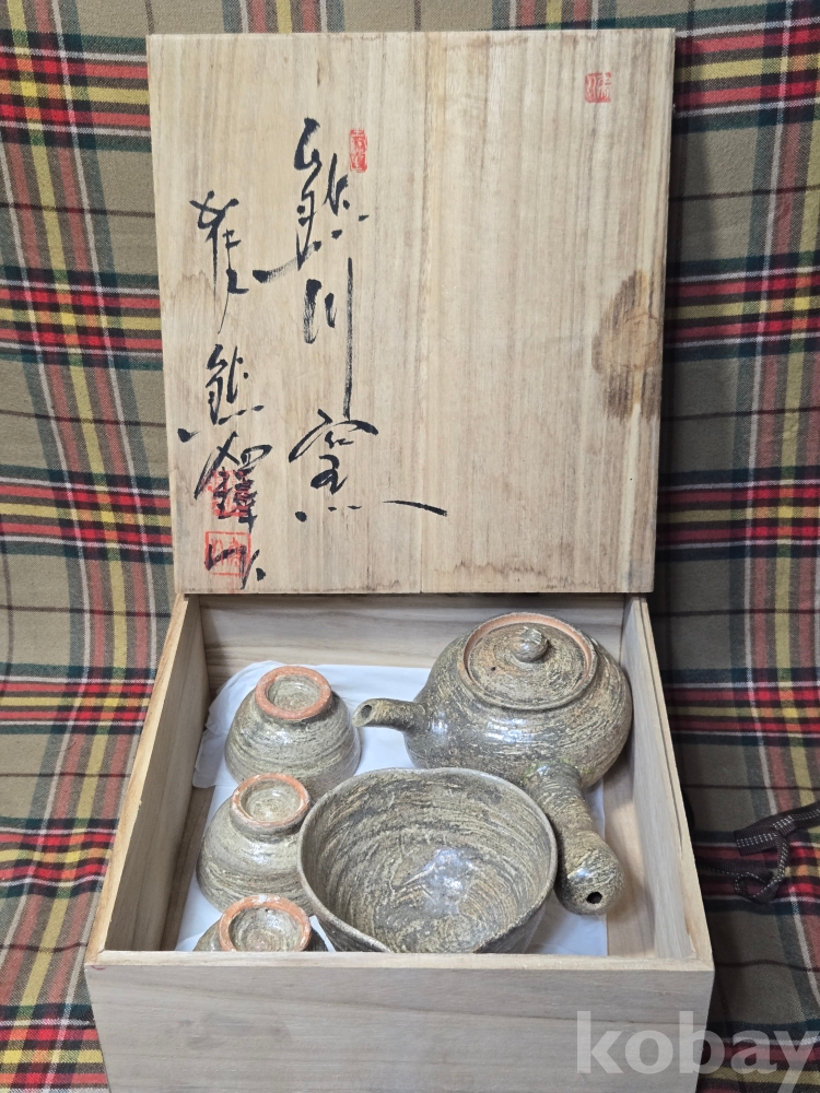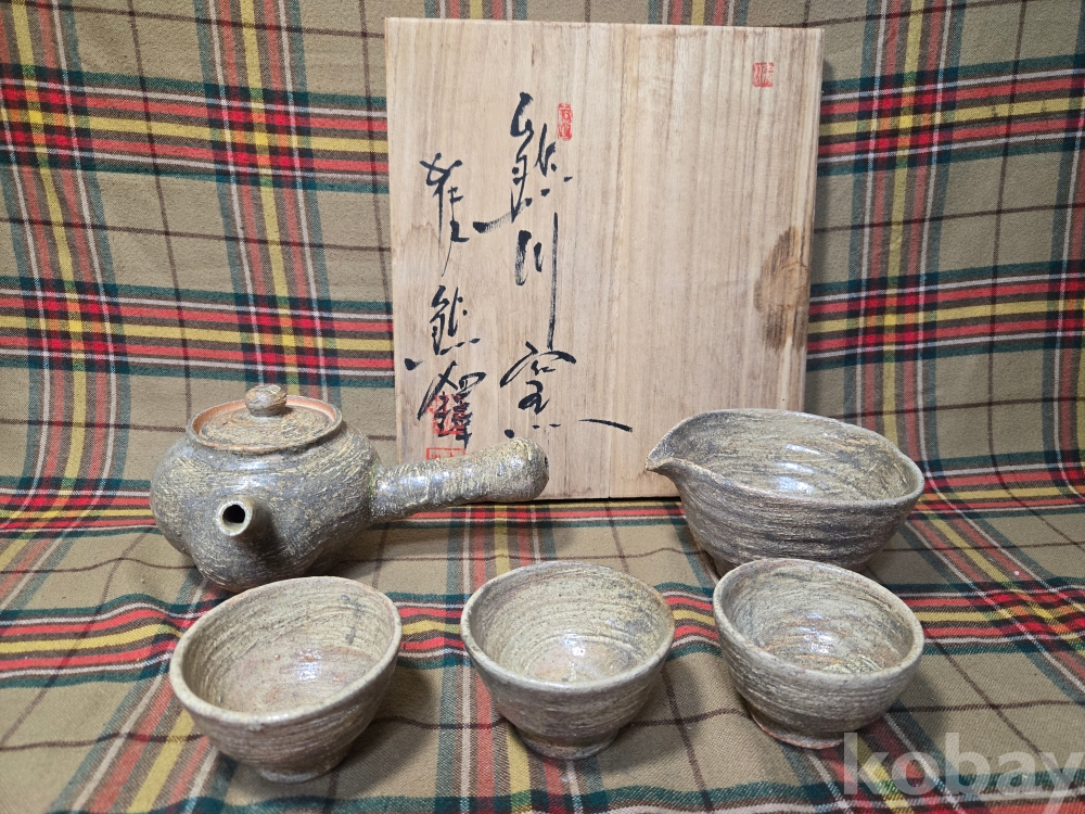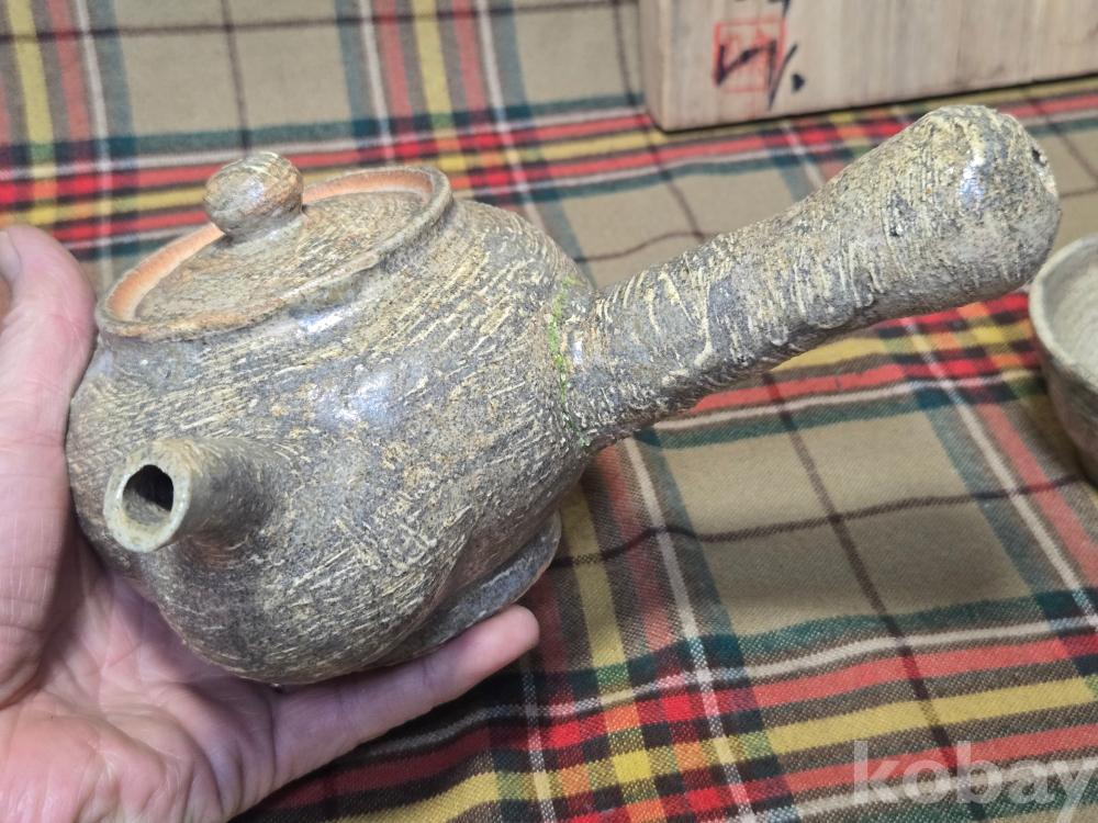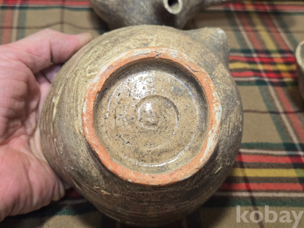 거친 연질의 웅천 태토에 거칠고 과감하며 화려한 미감을 갖는 귀얄분청다기세트..작품 수결없으나 작가로부터 직접 받은 다기로 진품 보장합니다.