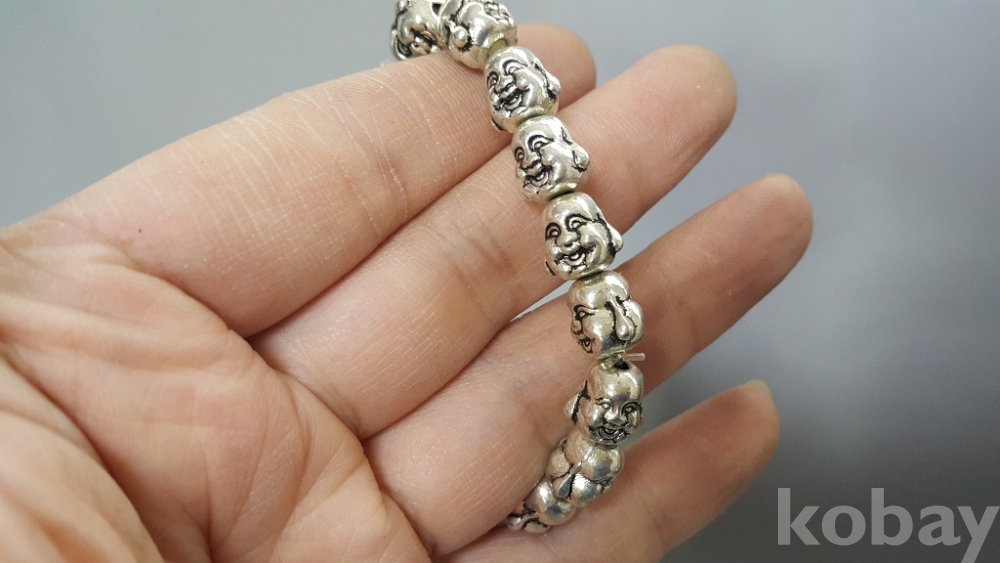 포대화상을 동에 담아 실에 꿰서 만든 소품입니다