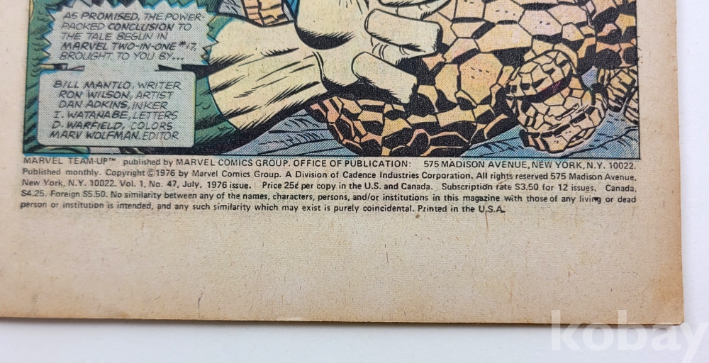 물 품 명 | SPIDER-MAN & the THING / Vol.1 #47 July 1976 / MARVEL COMICS GROUP / 미국 |